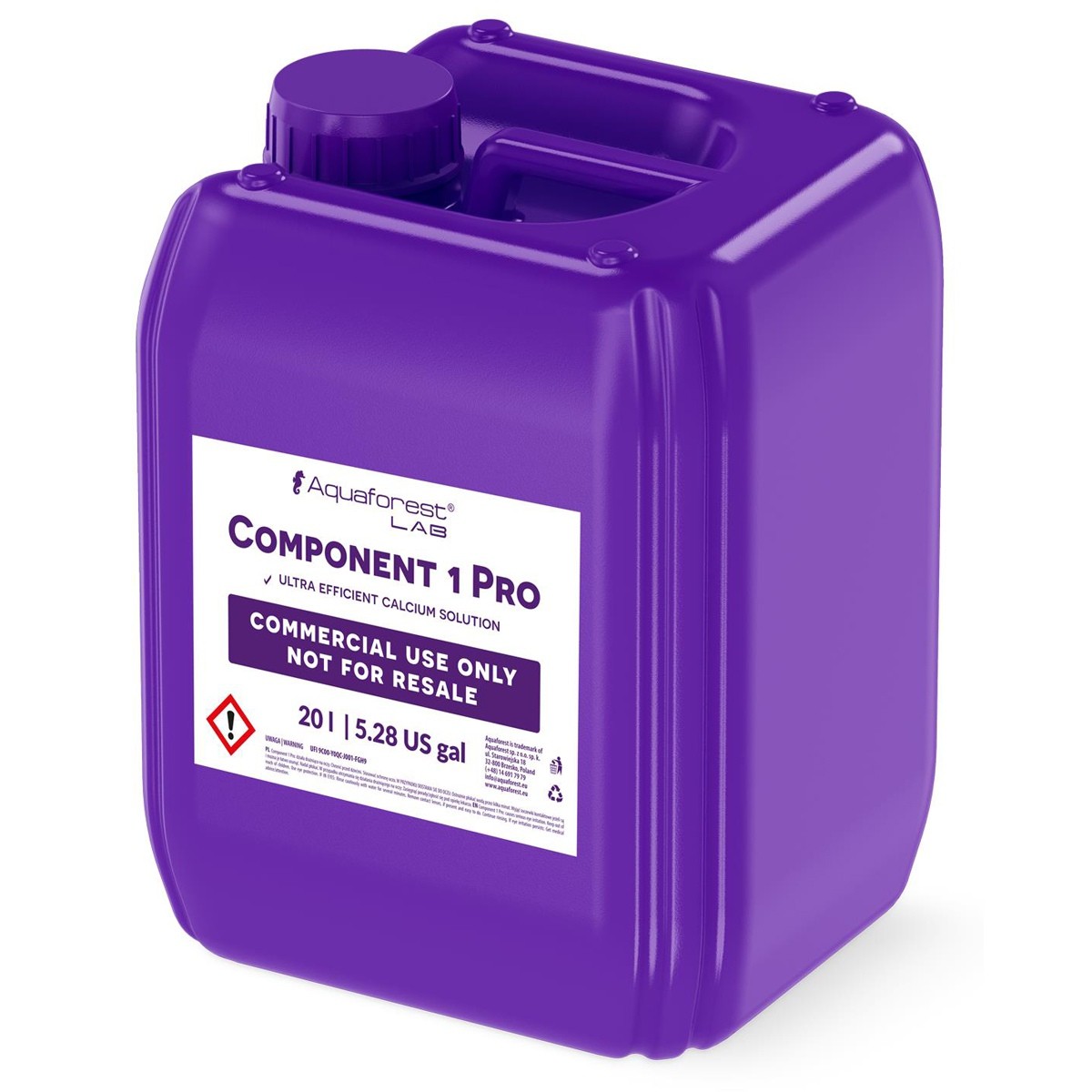 Component 1+ zawiera: Ca, Sr, Ba, Co, Mn, Cu, Fe, Zn, Ni, Cr. (25ml podnosi Ca o 4,5 ppm /100L)