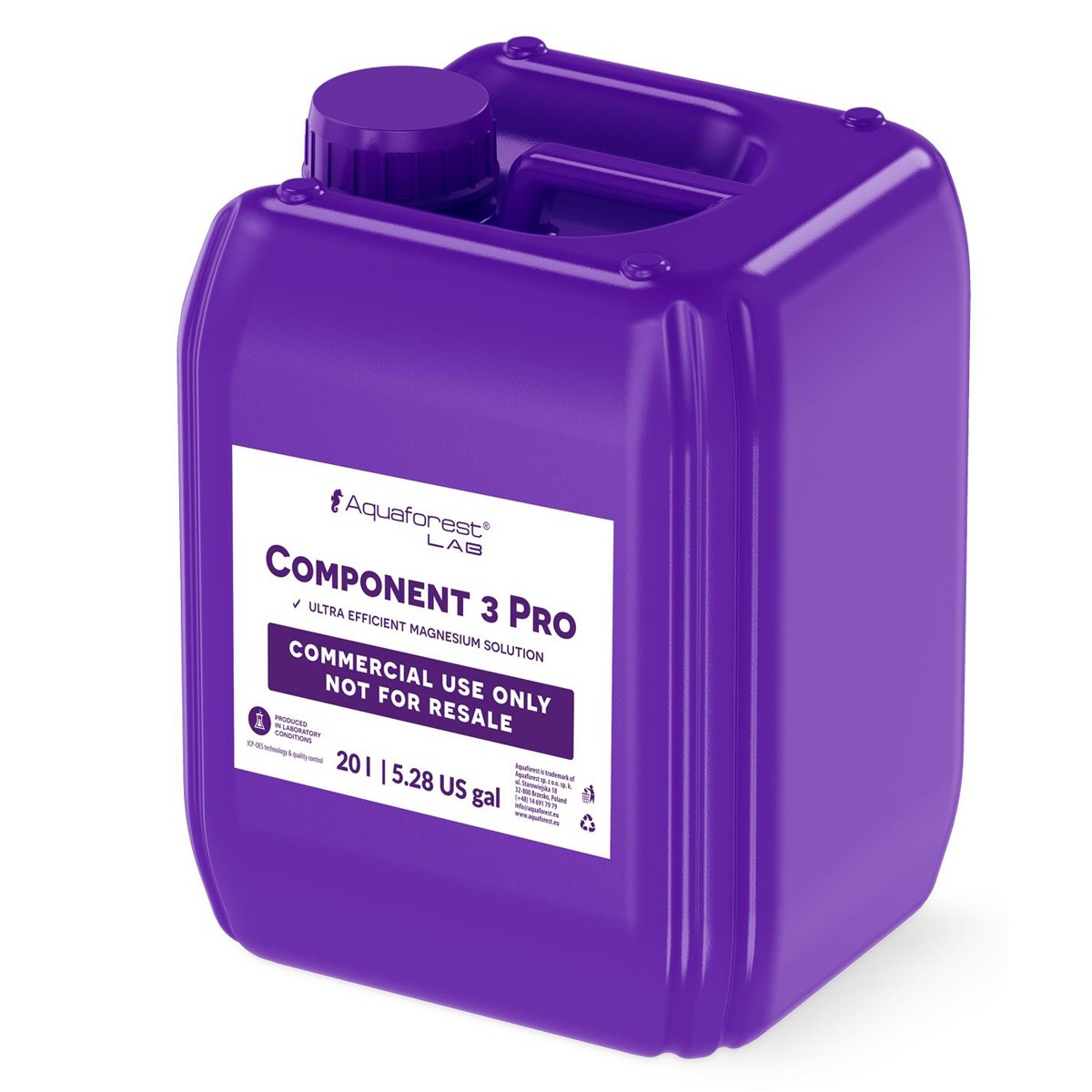 Component 3 PRO zawiera: Mg, sole mineralne oraz K, B. Component 3 zawiera Reef Mineral Salt, produkt niezbędny do prawidłowej stabilizacji parametrów w akwarium.