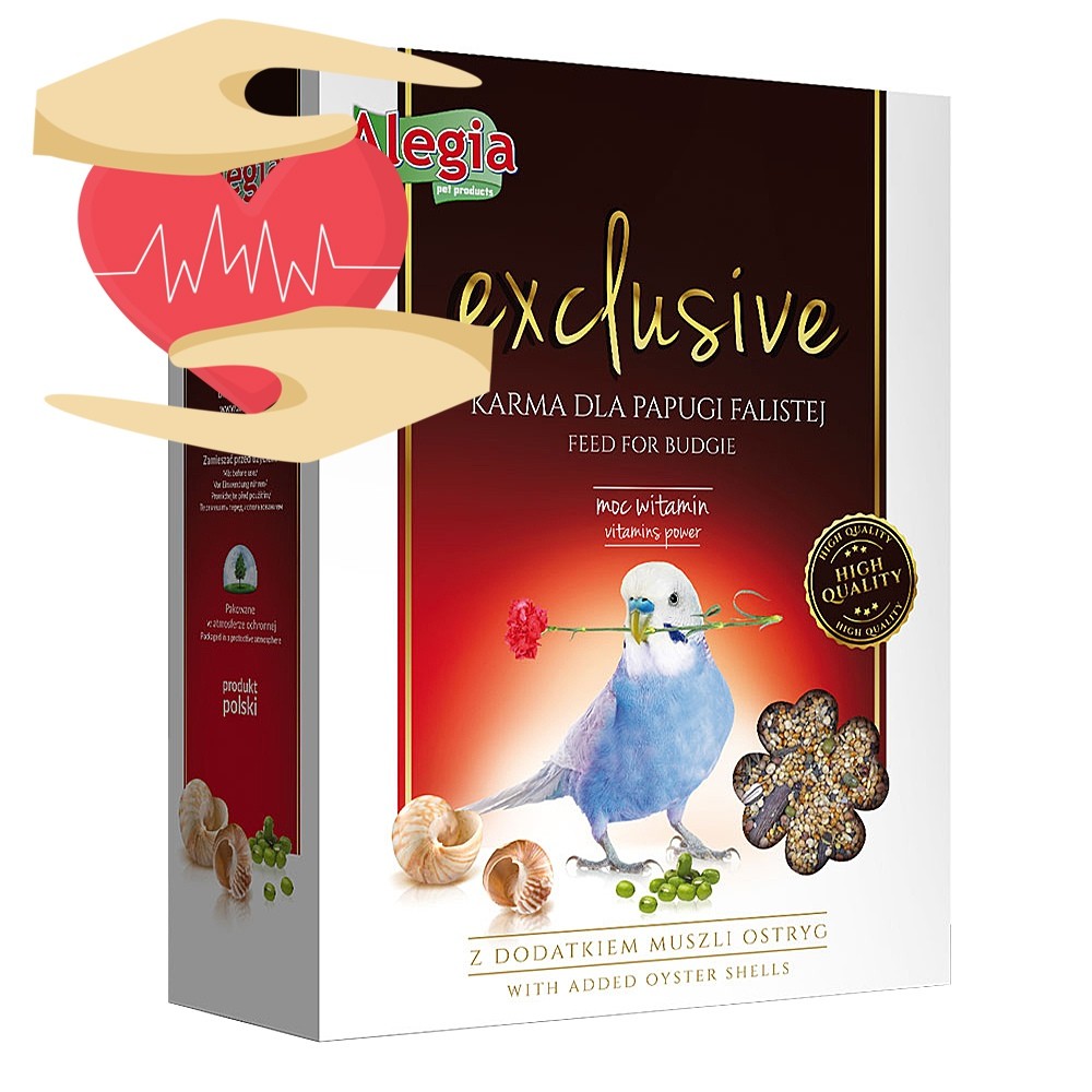 Karma Alegia Exclusive 700g dla Falistych to zbilansowana mieszanka nasion wzbogacona składnikami niezbędnymi dla dobrej kondycji Papug. Ponadto dzięki dodatkowi oczyszczonych muszli ostryg, karma bogata jest w wapń i fosfor. Pokarm zawiera nasiona traw oraz ziarna konopi, które są bogate w składniki mineralne oraz węglowodany. Mieszanka zielonego, czerwonego, żółtego i białego prosa ma za zadanie chronić system odpornościowy przed mikroorganizmami, poprawiać stan zdrowia oraz samopoczucie Papug.