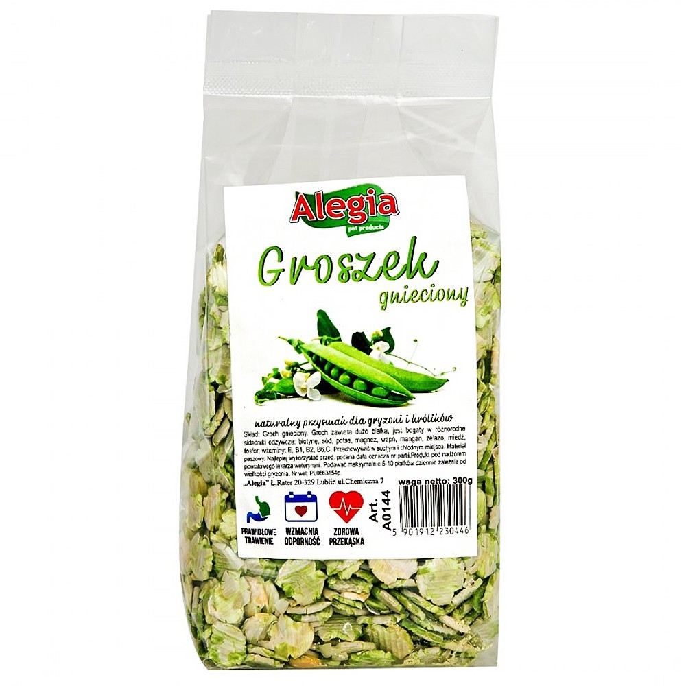 Doskonały przysmak dla każdego gryzonia i królika. Mało kto wie, że groszek dostarcza wielu witamin organizmowi. dlatego warto podawać jako uzupełnienie diety.