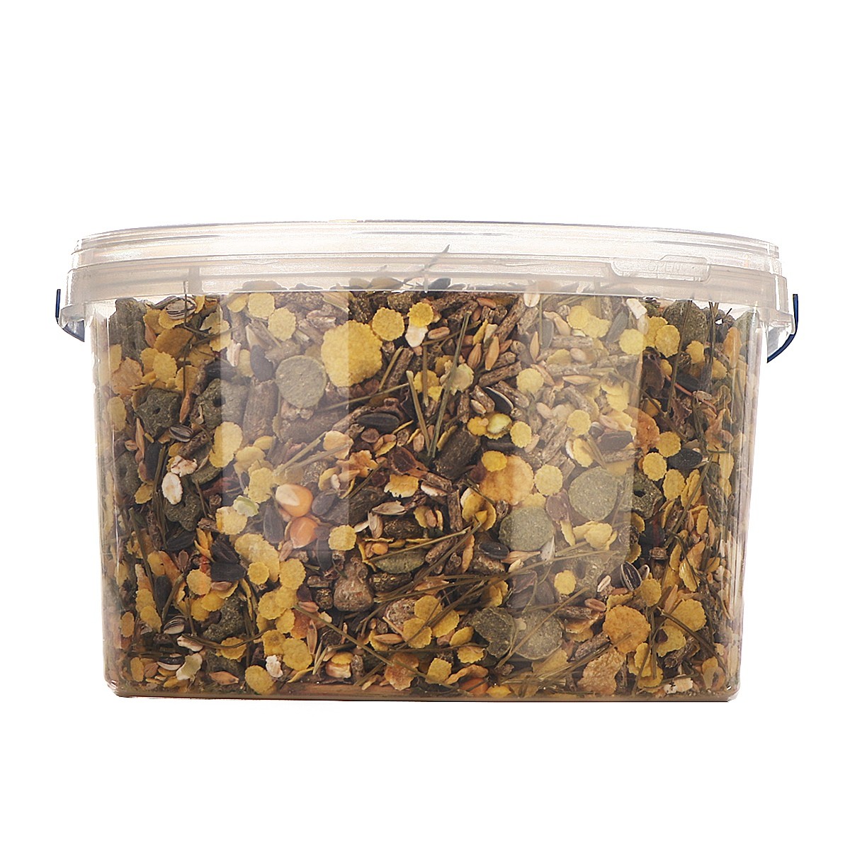 Duża porcja pokarmu dla wszystkich gryzoni oraz królików, jest to pełno porcjowa mieszanka z najlepszymi składnikami. Zawiera najlepszej jakości warzywa suszone, owoce, nasiona oleiste oraz granulaty. Duża różnorodność składników w pokarmie Mieszanka, podnosi smakowitość karmy i sprawia że jest chętnie zjadana praktycznie w całości przez wszystkie króliczki oraz gryzonie. W swoim składzie karma zawiera również suszone warzywa np.: ziemniak, burak, bobik czy groch gnieciony, dzięki czemu jest bardzo chętnie pobierana przez wybredne króliki czy gryzonie. Korzystnie wpływa także na kondycję i wygląd okrywy włosowej. Pokarm jest także bogatym źródłem witamin C, A, K oraz wapnia, żelaza, cynku i potasu.