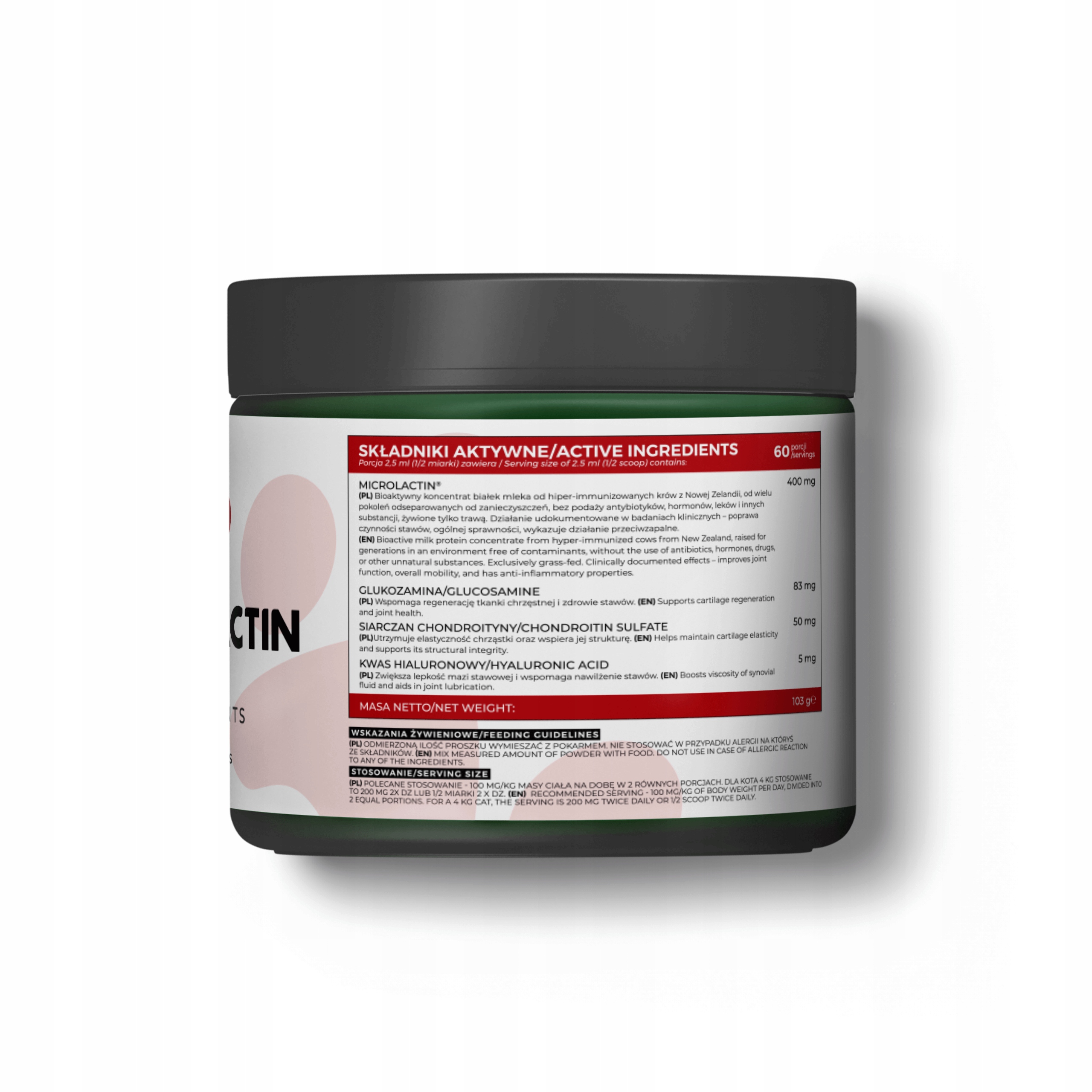 ANIMALACTIN Forte to innowacyjny suplement, stworzony z myślą o kotach, które często ukrywają ból i problemy ze stawami. Dzięki podwójnemu mechanizmowi działania, łączy moc MicroLactin® z dodatkowymi składnikami: kwasem hialuronowym, glukozaminą i siarczanem chondroityny. Takie połączenie skutecznie wspiera regenerację i ochronę stawów, zapewniając Twojemu kotu pełną swobodę ruchu.