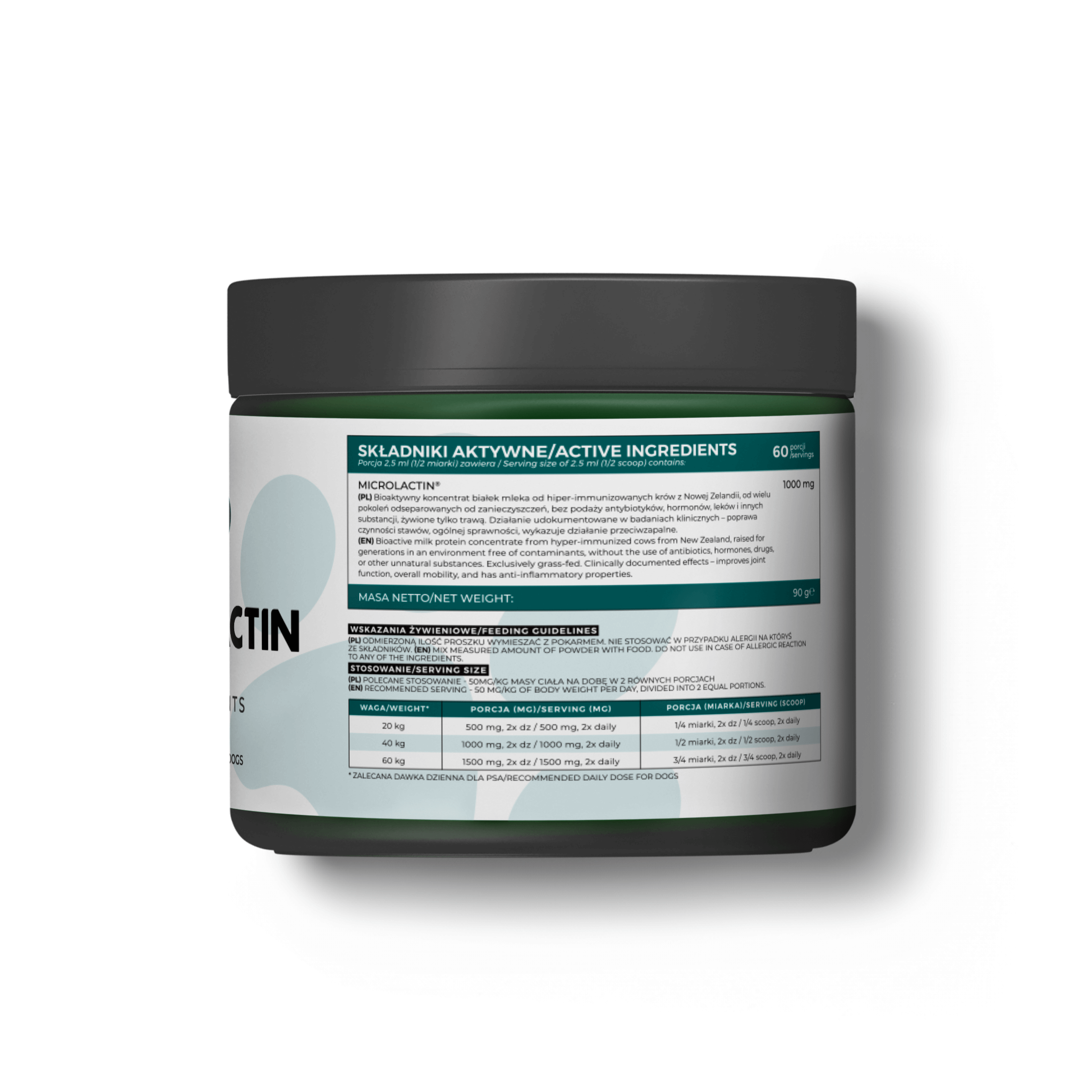 | ANIMALACTIN dla dużych psów – Zdrowe stawy, sprawny ruch! Specjalistyczny suplement diety w proszku – wspiera stawy, chrząstki i kości Twojego psa! ANIMALACTIN to innowacyjny suplement opracowany specjalnie z myślą o dużych rasach psów, które często zmagają się z problemami ze stawami. Dzięki unikalnej formule z MicroLactin®, produkt skutecznie wspomaga zdrowie i regenerację układu ruchu, zapewniając Twojemu psu komfort i radość z codziennej aktywności. Dlaczego warto wybrać ANIMALACTIN? MicroLactin® – składnik potwierdzony badaniami klinicznymi