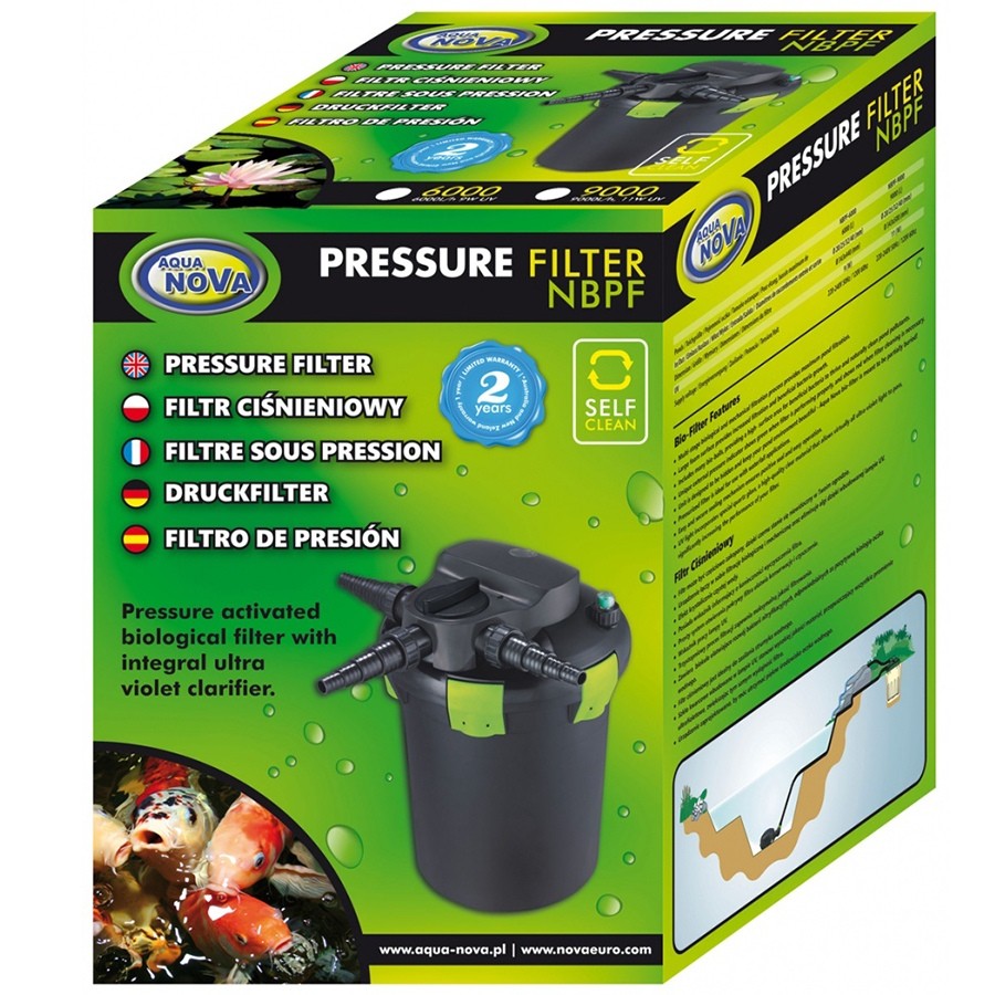 Aqua Nova NBPF to zaawansowane filtry ciśnieniowe z unikalnym systemem samoczyszczenia SELF CLEAN, które łączą w sobie filtrację biologiczną, mechaniczną oraz eliminację alg dzięki wbudowanej lampie UV. Dzięki nim uzyskanie krystalicznie czystej wody w oczku wodnym staje się niezwykle łatwe i przyjemne.