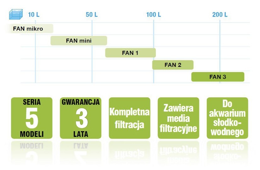 Filtr wewnętrzny FAN jest przeznaczony do oczyszczania i napowietrzania wody w akwariach. Dzięki starannie dobranej gąbce, umieszczonej na perforowanym trzpieniu, jest odporny na zabrudzenia i nie wymaga częstego czyszczenia. Plastikowy pojemnik ochronny zatrzymuje grubsze zanieczyszczenia, co gwarantuje wydajną filtrację wody w akwarium przez dłuższy czas.