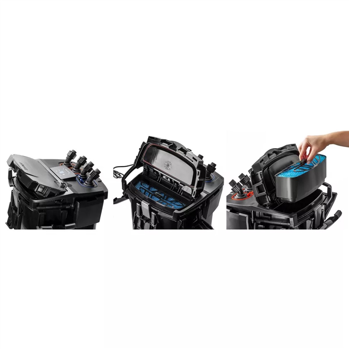 Filtr Hypermax 4500 to niezawodny filtr kanistrowy sterowany za pomocą aplikacji, który zapewnia wyjątkową jakość filtracji w akwariach o pojemnościach od 200 do 1500 litrów. Jest łatwy w obsłudze, dzięki intuicyjnemu panelowi sterującemu i kółkom do przesuwania. Wyróżnia się ogromną pojemnością filtracyjną, wydajną pompą oraz zastosowaniem opatentowanych rozwiązań, takich jak prefiltr, podwójne zawory kulowe i samoczynne zalewanie filtra.