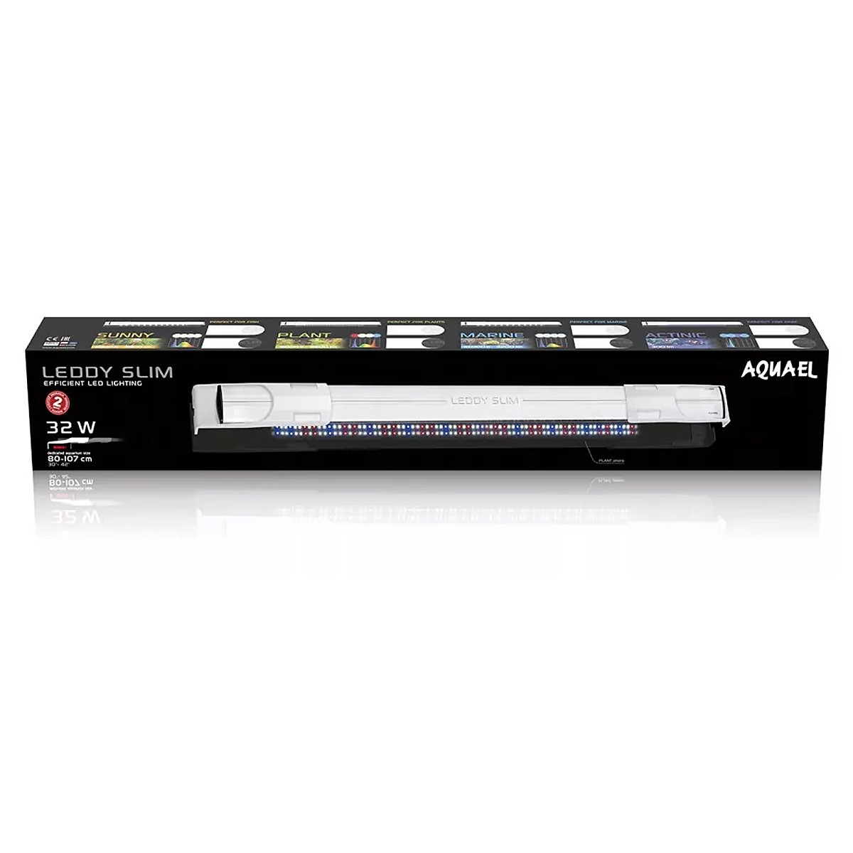 Lampa ledowa LEDDY SLIM 32W PLANT jest przeznaczona do oświetlania słodkowodnych roślinnych zbiorników otwartych o długości od 80 do 107 cm. Zawiera starannie dobrane diody LED, które zapewniają idealną iluminację akwarium gwarantując doskonałe warunki do życia dla jego mieszkańców oraz wyjątkowy efekt wizualny. Jej płaski, futurystyczny kształt i modny, biały kolor sprawiają że doskonale komponuje się z nowoczesnymi zbiornikami akwariowymi i świetnie wygląda w każdym wnętrzu. Poza tym jest uniwersalna – rozsuwane wsporniki umożliwiają jej instalowanie również na zbiornikach o niestandardowych rozmiarach.