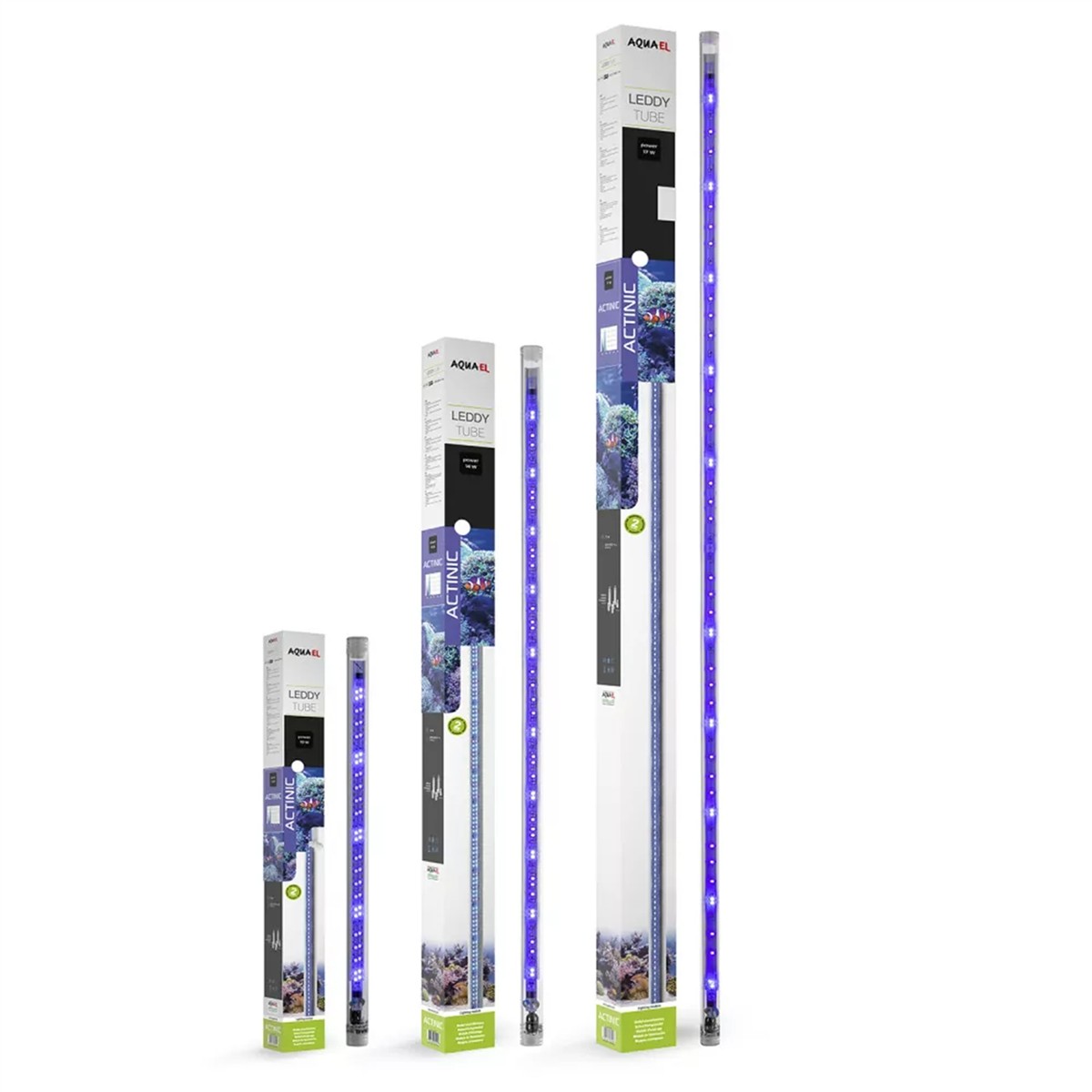 Ledowy zamiennik dla świetlówek do akwariów serii LEDDY TUBE ACTINIC 2.0. Model wyposażony jest w odpowiednio ułożone nowoczesne diody LED emitujące światło o barwie aktynicznej i łącznej mocy 10W. Diody umieszczone zostały na aluminiowym profilu, w okrągłej szklanej tubie, która jest jednocześnie kloszem lampy, przepuszczającym niemal 100% światła.