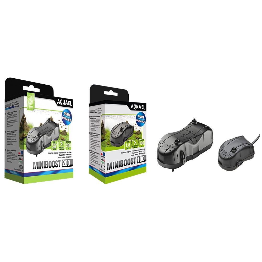 MINIBOOST 200 to propozycja dla wszystkich posiadaczy małych i średnich zbiorników akwariowych (od 150 do 200). Służy do efektywnego napowietrzania wody akwariowej oraz napędu tradycyjnych filtrów gąbkowych (stosowanych obecnie najczęściej do akwariów z krewetkami i z narybkiem). Wyróżnia bardzo małymi rozmiarami, dzięki czemu nie rzuca się w oczy i nie zabiera wiele miejsca.
