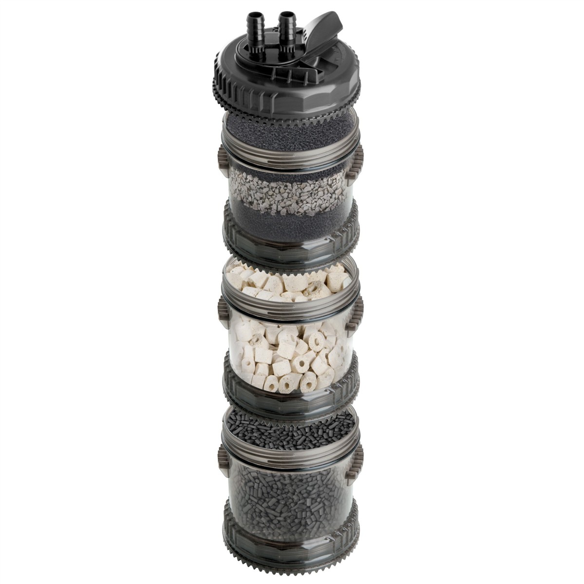 MultiKani 800 jest filtrem zewnętrznym, który dzięki swojej pomysłowej i przemyślanej konstrukcji może obsługiwać szeroki zakres pojemności zbiorników. Dzięki temu w sytuacji gdy dotychczasowa pojemnośc filtra nie jest juz wystarczająca nie ma koniecznosci zakupu nowego większego filtra - wystarczy dokupic kolejny pojemnik na media filtracyjne.