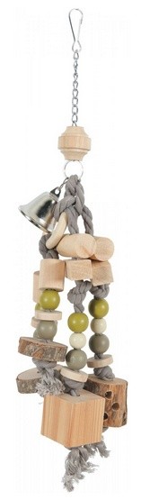 Zabawka drewniana Callao dla papugZabawka do zawieszenia CALLAO to idealny dodatek do klatki dla papug i średnich papużek z zakrzywionymi dziobami.Wykonana z połączenia elementów drewnianych, kolorowych sznurków, koralików oraz dzwoneczka.…
