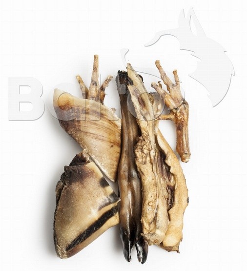 Mając na uwadze portfele właścicieli psów, zebraliśmy w zestawie funkcjonalne gryzaki o stosunkowo niskiej cenie: stripsy wołowe (skóra z głowy wołowej-twarda i nieregularna), kopyta wołowe (można je faszerować jak konga), kurze łapki, racice dzika lub sarny - czyli dla każdego coś miłego.