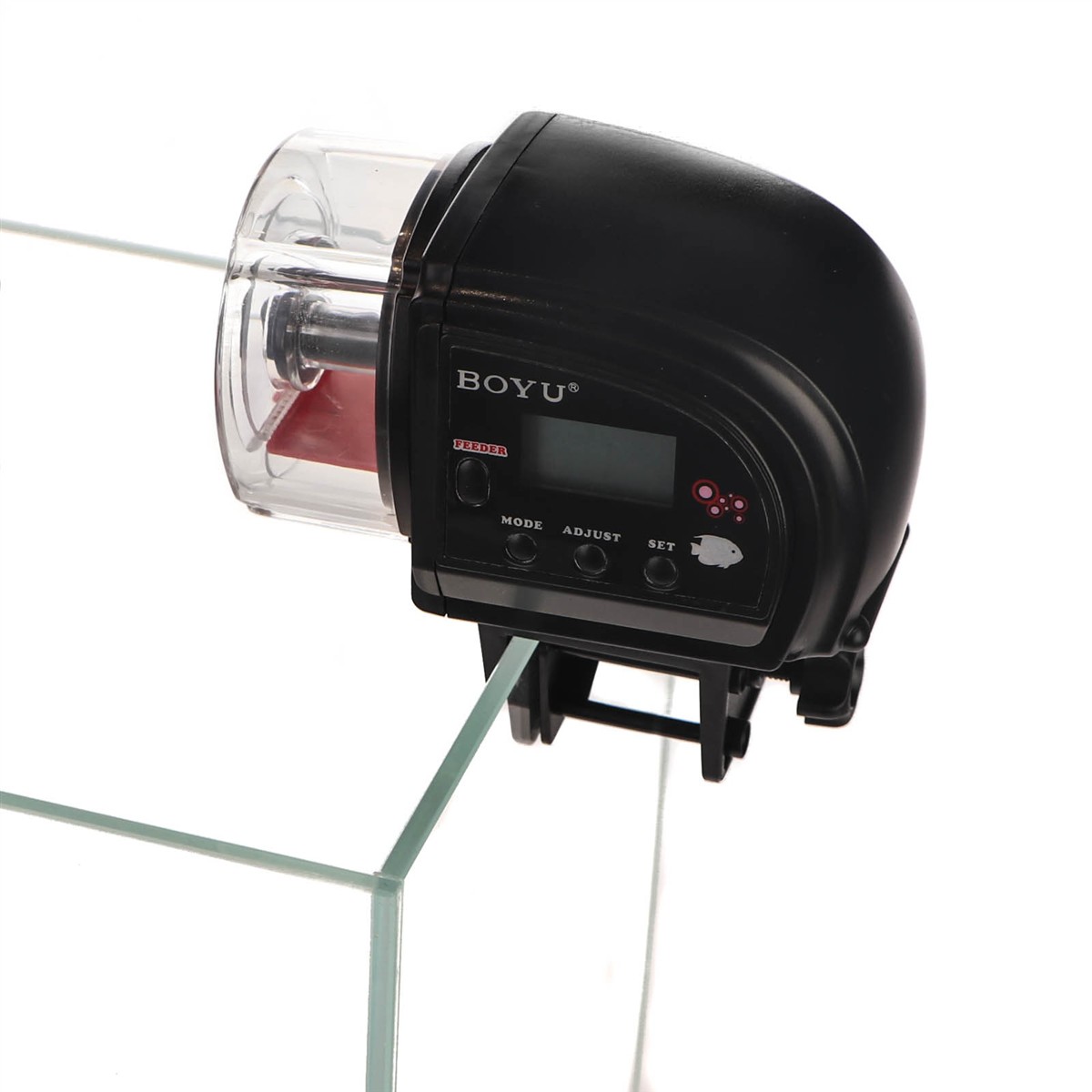 Karmnik automatyczny dla ryb akwariowych. Zaprogramuj ilość i częstotliwość podawania karmy rybom i nie martw się, że padną z głodu podczas Twoich wakacji. Do montażu na pokrywie lub krawędzi akwarium.