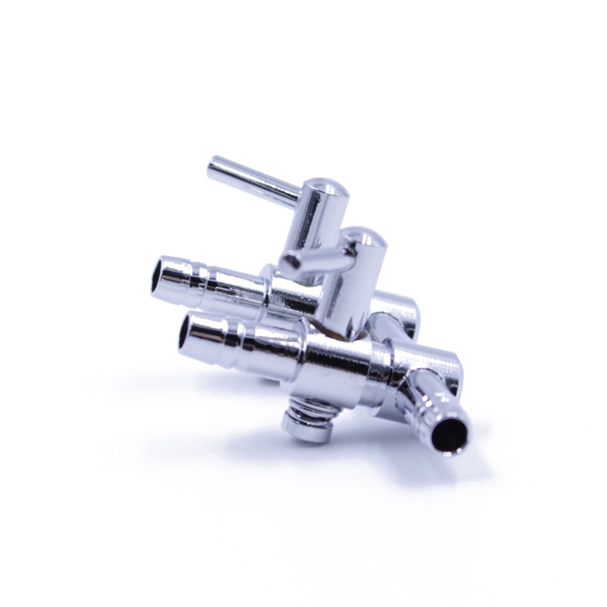 Trójnik wykonany jest z wysokiej jakości materiału. Zaworki dławiące są zaprojektowane z myślą o precyzyjnej regulacji strumienia gazu oraz o całkowitej szczelności układu podczas zamknięcia przepływu, nawet przy użyciu wysokiego ciśnienia.