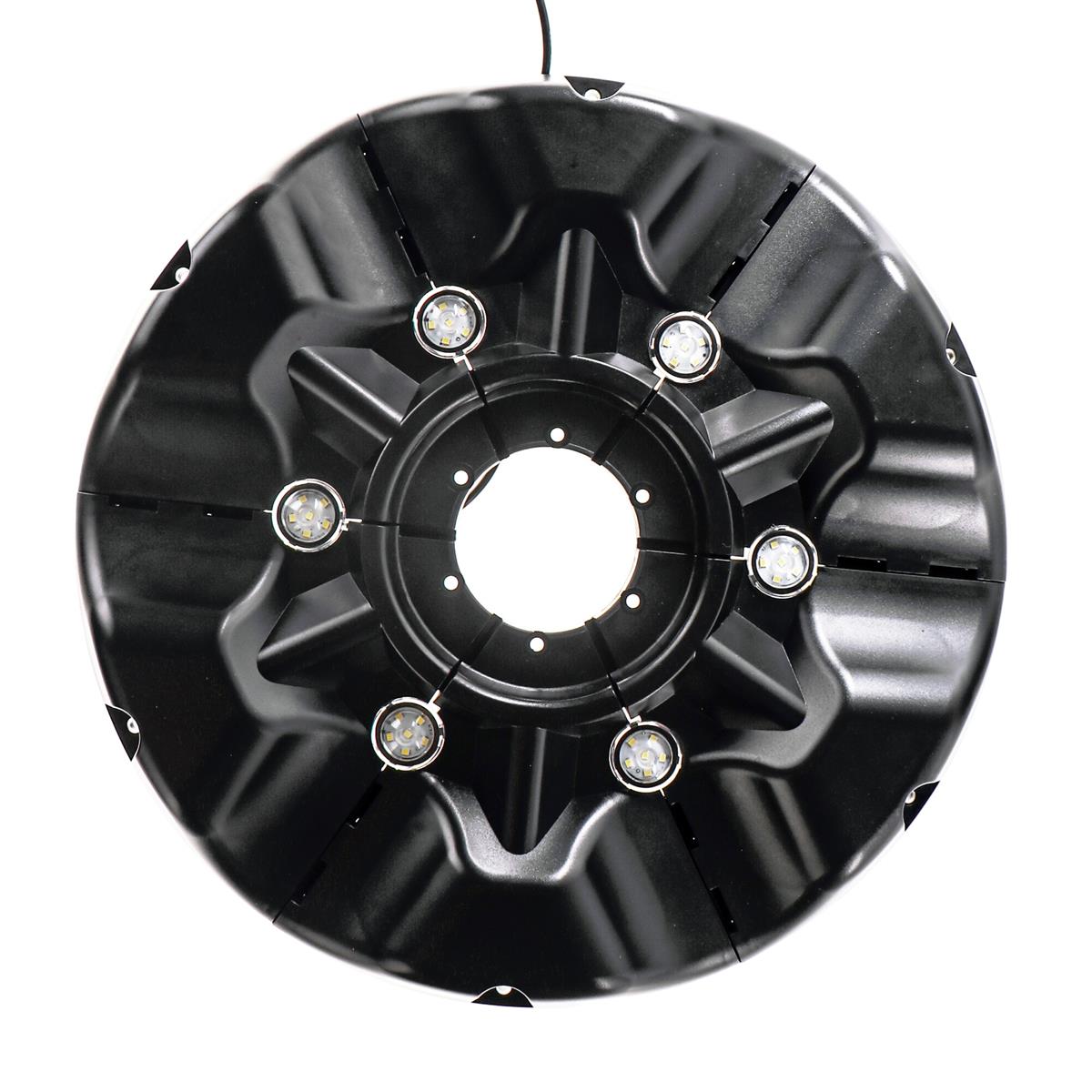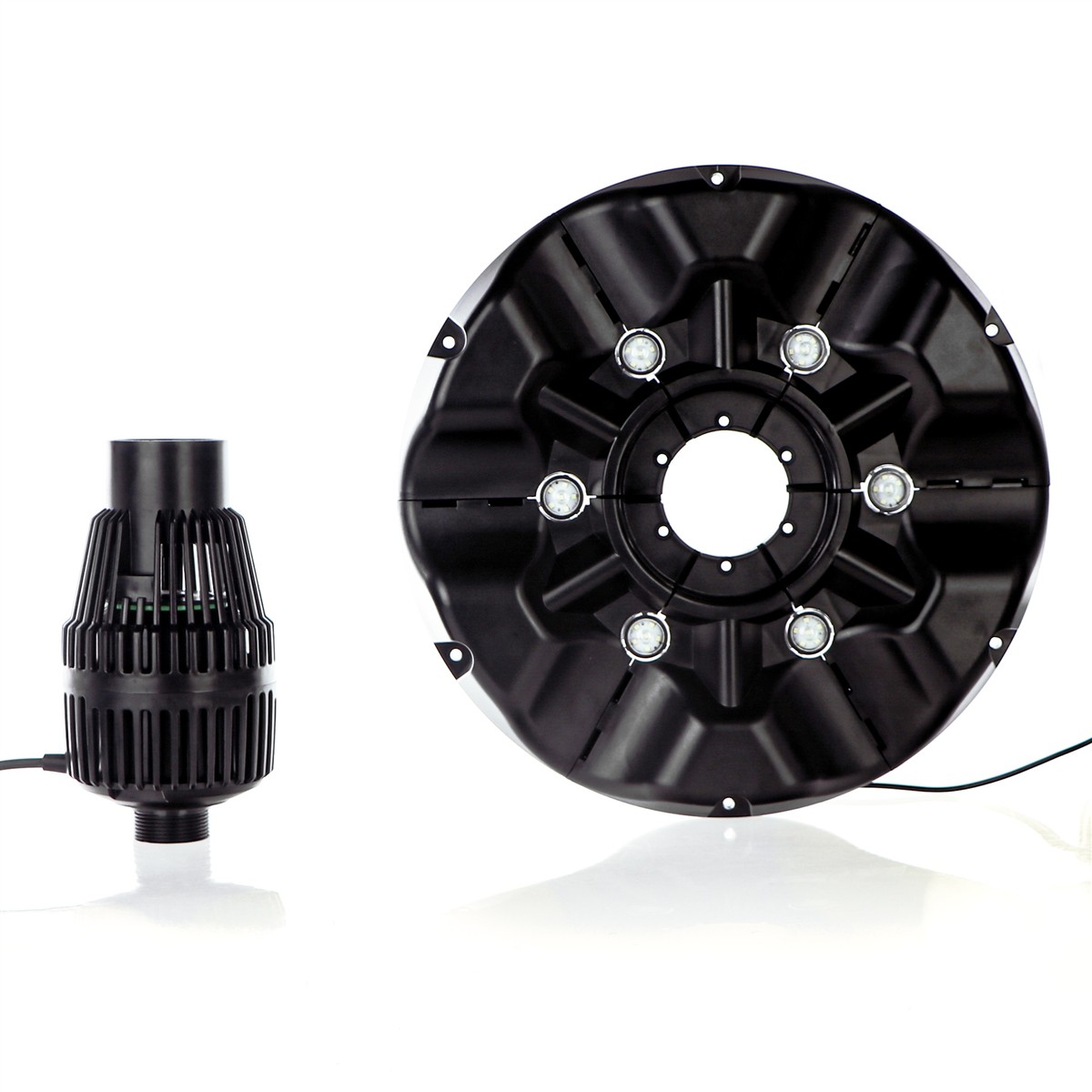 W nocy fontanna z podświetleniem LED tworzy wspaniały efekt dekoracyjny ogrodu. Oświetlenie LED ma dodatkowy przewód zasilający dzięki któremu możemy je włączać tylko o zmroku. Oświetlenie nie tylko upiększa staw i jego otoczenie, ale także decyduje o właściwym rozwoju całego ekosystemu wodnego. Krótko mówiąc światło wydłuża sezon w ogrodach i stawach.