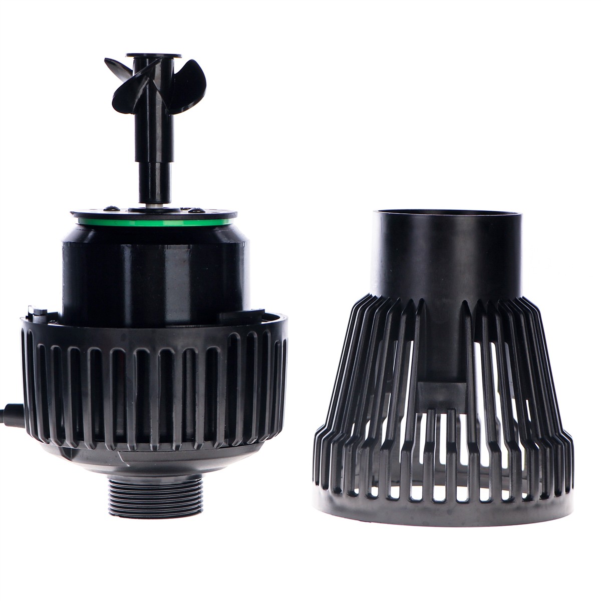 Pompa ukryta jest w koszu, którego zadaniem jest zatrzymać wszelkie duże cząstki stałe (pływające patyki, kamienie itp), mogące zablokować wirnik. Wszystko co jest w stanie się przedostać przez koszyk zostanie przepompowane i wyrzucone wraz z fontanną, gdyż ta toleruje takie zabrudzenia. Oczywiście, zamulona czy brudna woda też nie jest dla pompy przeszkodą.
