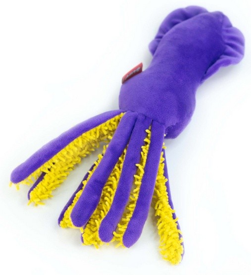 Calma to fioletowa kałamarnica, której żółte macki wydają szeleszczące dźwięki i mają różne faktury – to prawdziwa sensoryczna przygoda dla Twojego psa! Każda macka to nowe wyzwanie dla zębów i pyska. Zabawka sprawdzi się zarówno w domu, jak i na spacerze jako psia zdobycz!