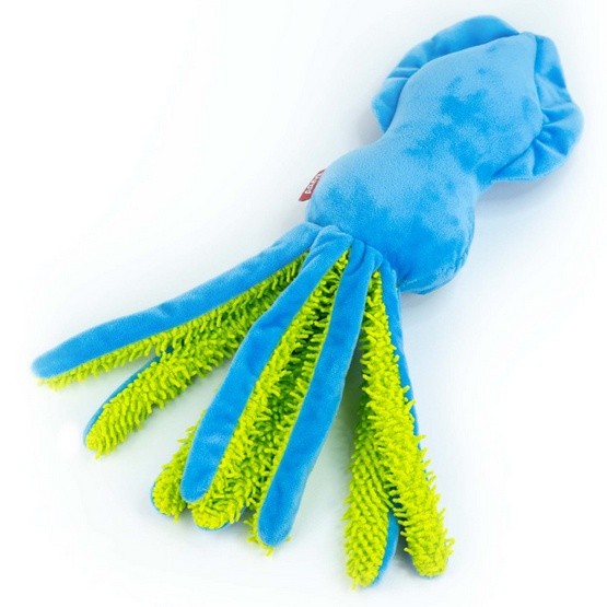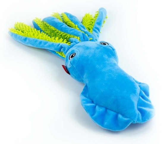 Karina to duża, niebieska kałamarnica z szeleszczącymi, zielonymi mackami, które zachwycają różnorodnością faktur. To nie tylko zabawka, ale prawdziwa sensoryczna przygoda dla Twojego pupila! Każda z macek to nowe wyzwanie dla pyska i zębów – idealna do memłania, tarmoszenia i noszenia.