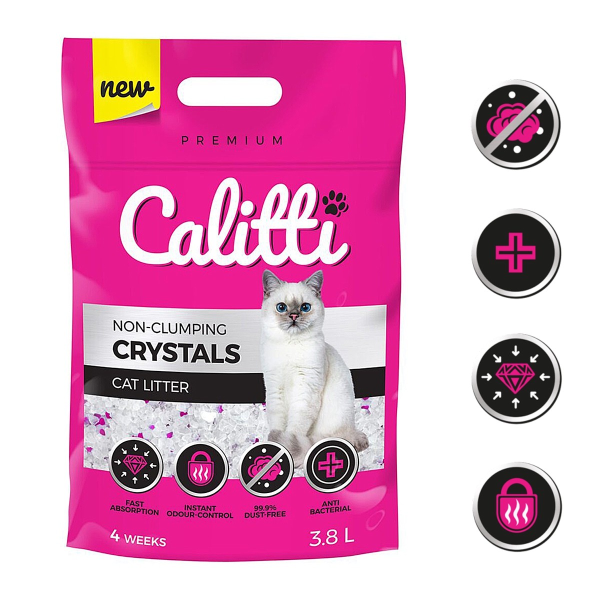 Żwirek silikonowy Calitti błyskawicznie wchłania mocz, eliminując przy tym brzydkie zapachy już w kilka sekund po użyciu. Co więcej, żwirek jest niesamowicie wydajny, ponieważ wystarcza aż na 4 tygodnie użytkowania.