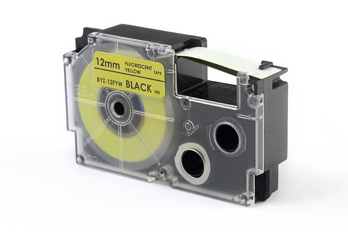 Taśma JetWorld Zamiennik Casio Czarny na Fluorescencyjnym Żółtym 12mm x 5,5m (XR-12FYW, XR12FYW)
