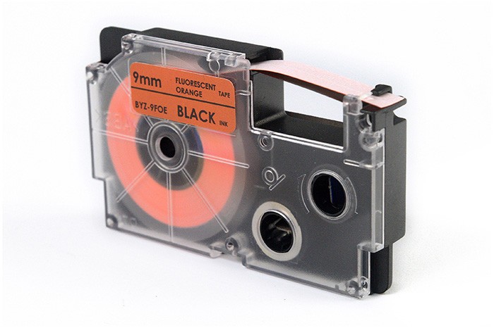 Taśma JetWorld Zamiennik Casio Czarny na Fluorescencyjnym Pomarańczowym 9mm x 5,5m (XR-9FOE, XR9FOE)