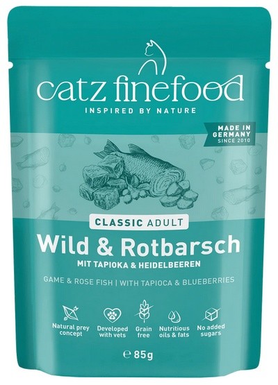 Specjał dla kotów – wartościowa karma dla naszych pupili. Catz finefood N°21 zawiera dużo delikatnej dziczyzny, karmazynu oraz wartościowe dodatki, jak borówka czarna i szałwia. Bez konserwantów, barwników i wzmacniaczy smaku. Nie zawiera GMO. Mmmmiau!