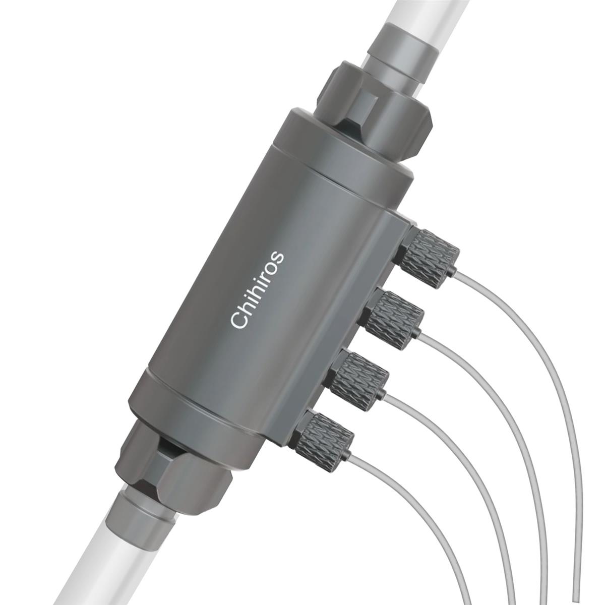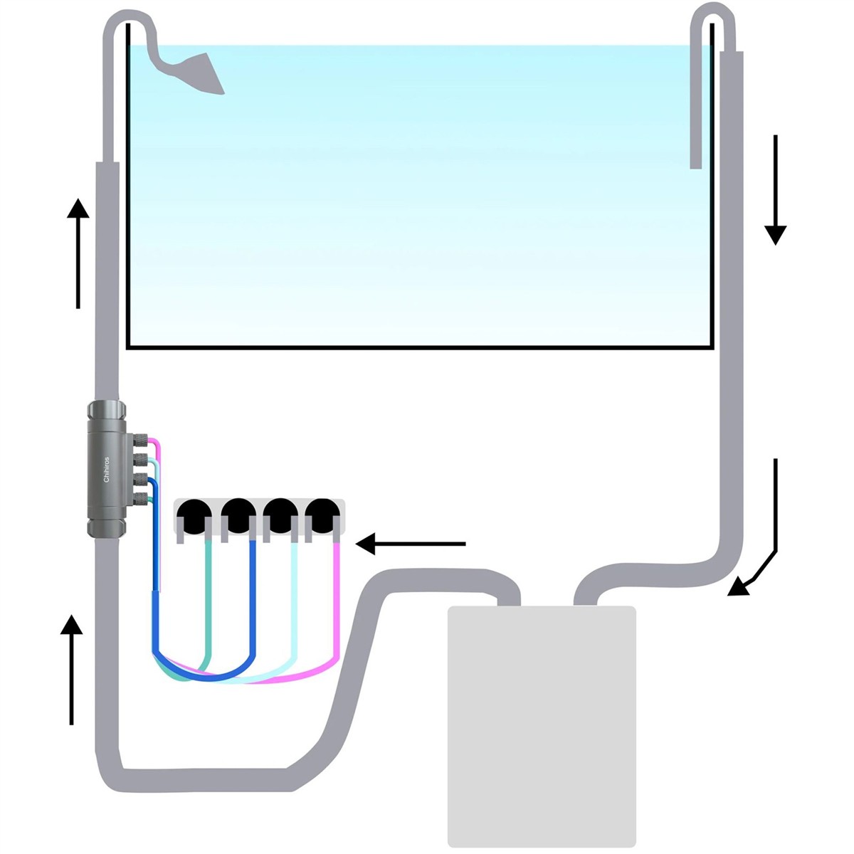 Chihiros Dosing Flow to adapter zakładany na wąż filtra zewnętrznego. Pozwala mieszać nawozy z przefiltrowaną wodą i równomiernie podawać je do akwarium – bez bałaganu i z pełną automatyzacją. To proste i czyste rozwiązanie, które poprawia nawożenie i zapewnia zdrowie roślin.