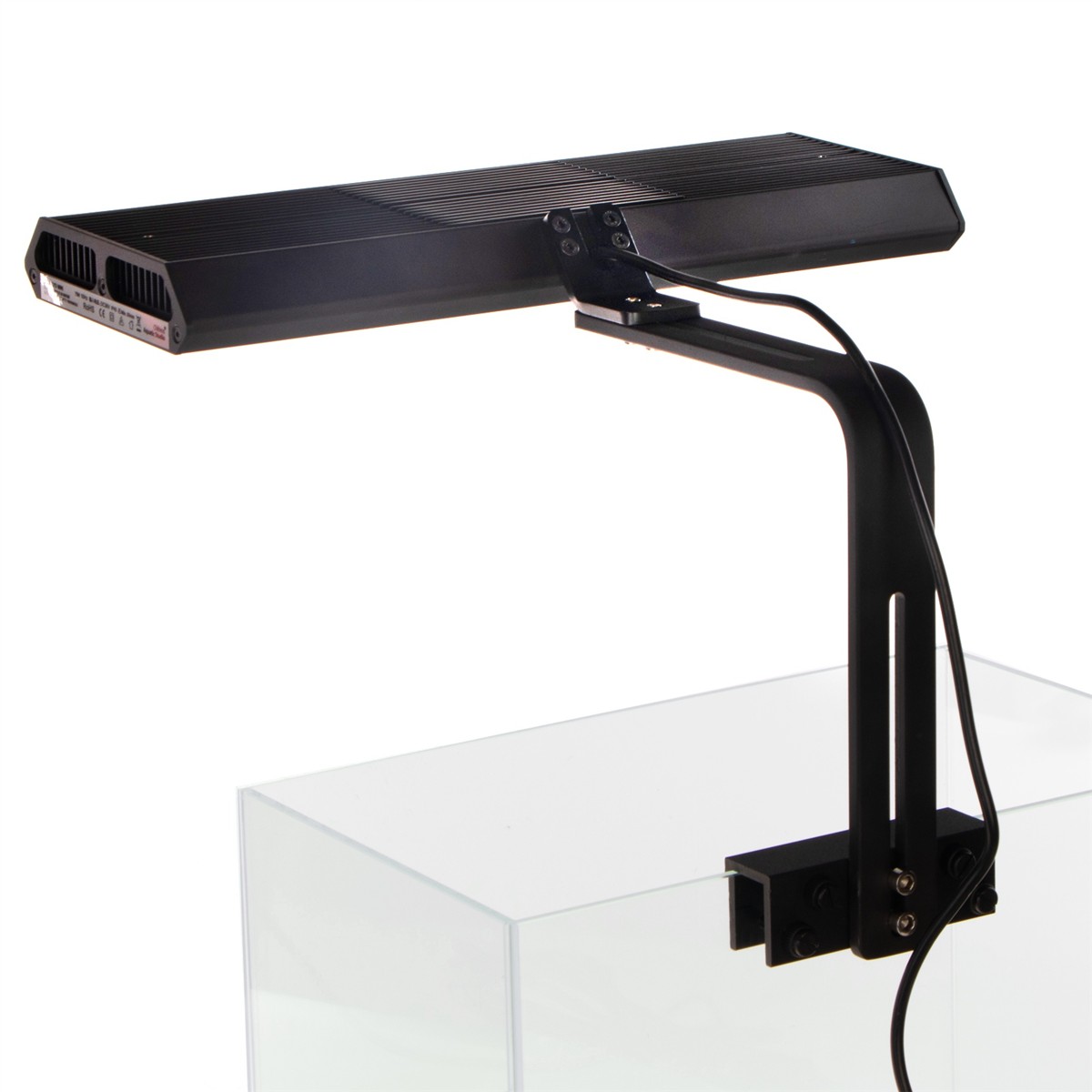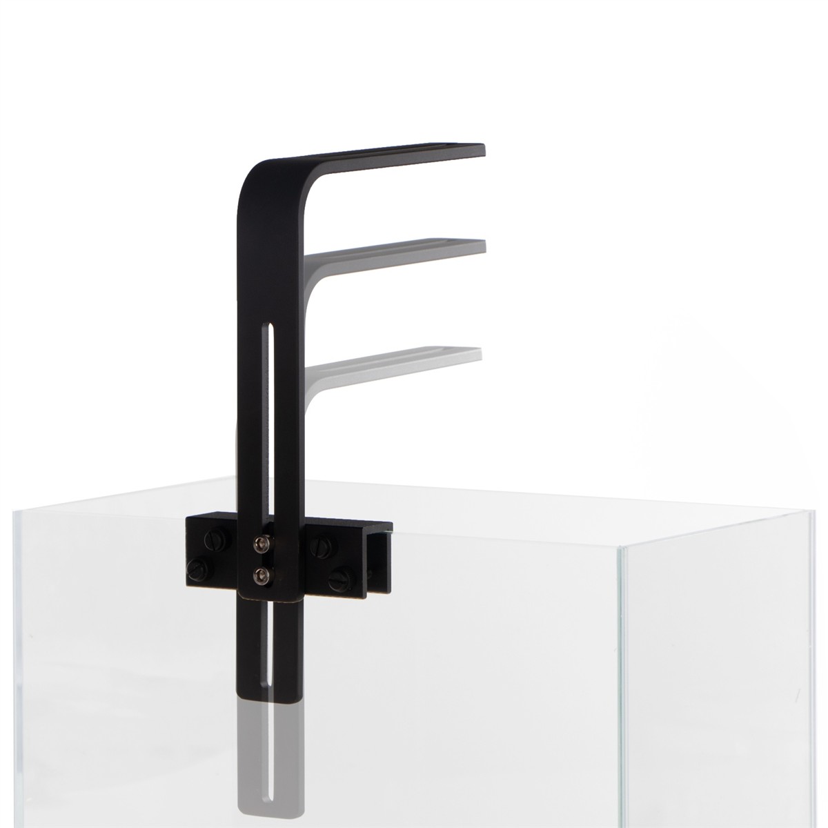 W zestawie znajdują się nóżki do montażu lampy na krawędzi szyby akwarium. Grubość szyby to max 12mm.