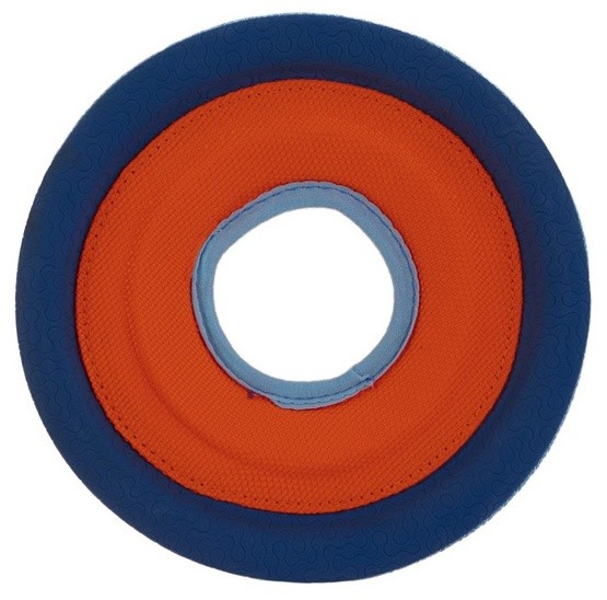 Z wierzchu zabawka jest wykończona wytrzymałą, nylonową tkaniną, natomiast od spodu gumą.