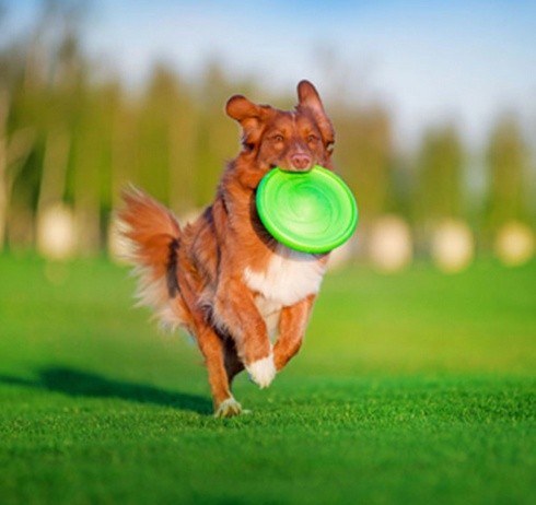 Rzeczywiście, w przeciwieństwie do sportowych frisbee, można go ugryźć. Pies odczuwa prawdziwą rozkosz, gdy jego zęby łatwo wchodzą w głąb materiału. I nawet jeśli nie uda jej się złapać FLYBERA w locie, może z łatwością podnieść go z ziemi, otrzymując w ten sposób pożądaną nagrodę.