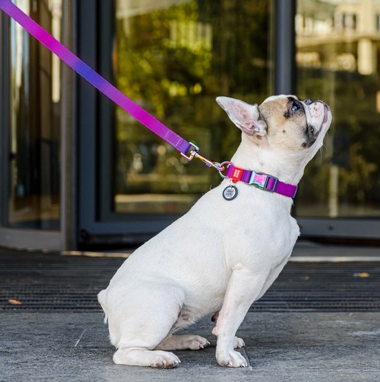 Obroża wykonana jest z przyjaznego dla środowiska i zrównoważonego materiału R-PET, który jest produkowany z plastikowych butelek pochodzących z recyklingu.