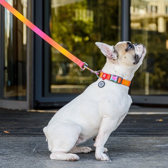 Obroża wykonana jest z przyjaznego dla środowiska i zrównoważonego materiału R-PET, który jest produkowany z plastikowych butelek pochodzących z recyklingu.