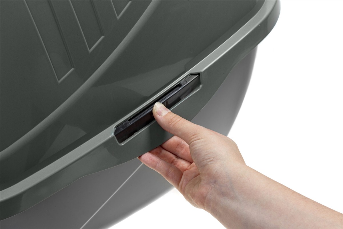 Zakryta toaleta dla kota z drzwiczkami. 92% materiałów wykorzystanych do jej produkcji pochodzi z recyklingu. Główną zaletą Easy Cat jest zdejmowana pokrywa wyposażona w uchylne drzwiczki oraz wysoka, wyprofilowana kuweta, która ogranicza wydostawanie się nieczystości. Takie rozwiązanie doskonale sprawdza się w przypadku, kiedy w mieszkaniu nie ma miejsca na odizolowanie kociej kuwety. Zakrywa zawartość, a dzięki wbudowanemu filtrowi węglowemu jeszcze lepiej zatrzymuje zapachy. Posiada sprytny uchwyt na dołączoną do zestawu łopatkę. Jej stonowana i elegancka kolorystyka sprawia, że świetnie sprawdzi się jako element wystroju wnętrza. Wyprodukowana w Polsce.