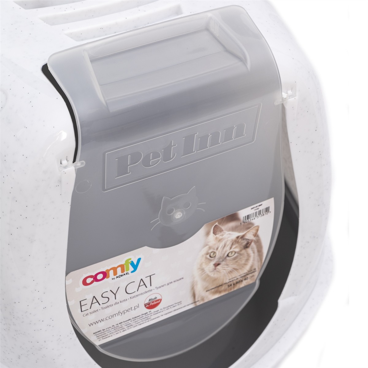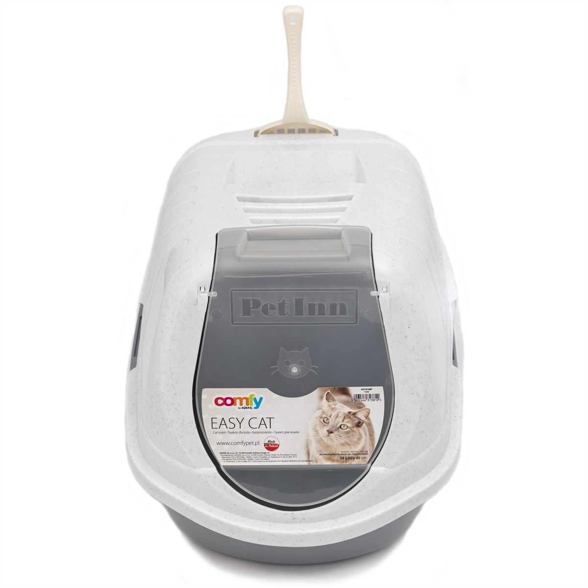 Toaleta dla kota, dzięki której zapewnienie czystości w pomieszczeniu oraz higieny wewnątrz kuwety jest naprawdę EASY. Jej główną zaletą jest zdejmowana pokrywa wyposażona w uchylne drzwiczki. Takie rozwiązanie doskonale sprawdza się w przypadku, gdy nie mamy miejsca na odizolowanie kociej kuwety. Zakrywa zawartość, a dzięki wbudowanemu filtrowi węglowemu jeszcze lepiej zatrzymuje zapachy. Sprytny uchwyt na łopatkę rozwiąże odwieczny problem pt:"gdzie zostawiłem łopatkę".