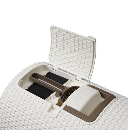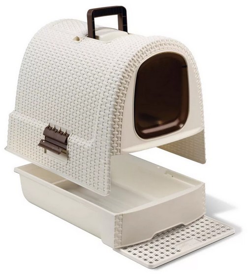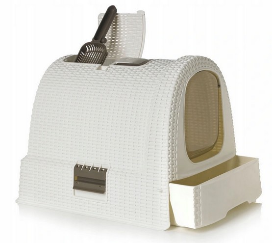 Estetyczna, przypominająca rattanowy kosz kuweta dla kota z wysuwaną szufladą i schowkiem na akcesoria (łopatka i mata czyszcząca łapki w zestawie), niezwykle łatwa w montażu i czyszczeniu. Kuweta posiada szczelne zatrzaski ograniczające wysypywanie się żwirku i filtr przeciwzapachowy, dla zwiększonego komfortu użytkowania. Jej obudowa, wyposażona w uchwyt, jest łatwa do przenoszenia.