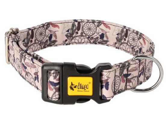 Regulowane obroże dla psa AMERICA są wykonane z drukowanego wodoodpornego materiału. Wielokolorowe obroże w modne i wyraziste wzory są odporne na ścieranie. Obroża została wyposażona w wygodne i solidne zapięcie typu klik-klak, które jest wykonane z wysokiej jakości, odpornego na trudną pogodę plastiku. Do zapięcia smyczy służy metalowe kółko, które zostało pokryte chromem. Dzięki temu po kontakcie z wodą nie zardzewieje.