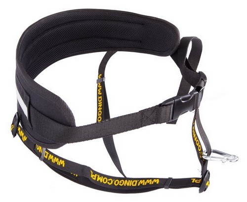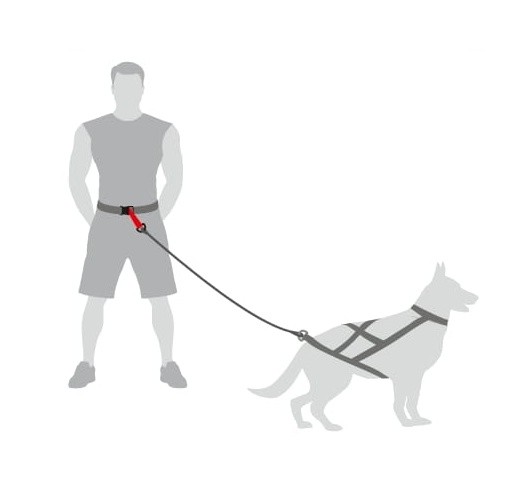 Do pasa pasują smycze Dingo z amortyzatorem (brak w zestawie z pasem) - wersja z rączką lub dwoma karabińczykami. Są to bardzo lekkie smycze z długim amortyzatorem, idealnie nadające się do biegania z psem. Zapewniają komfort nawet przy dużym szarpnięciu.