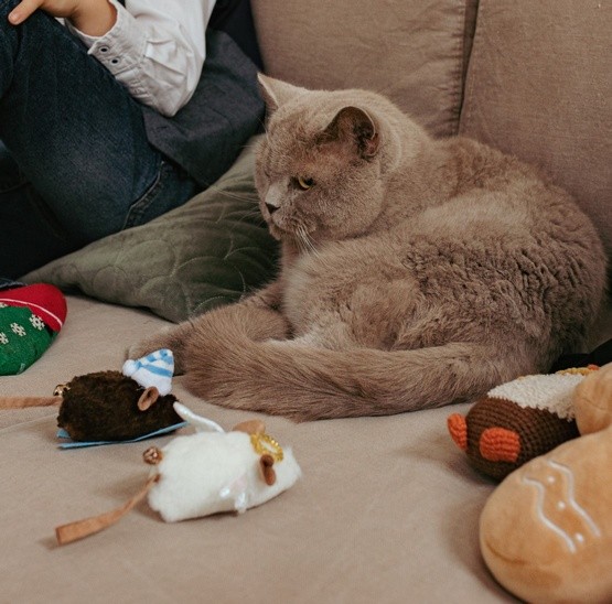 Myszkami może bawić się sam lub z właścicielem - można rzucać lub chować myszki, aby kociak ich szukał bądź za nimi gonił.