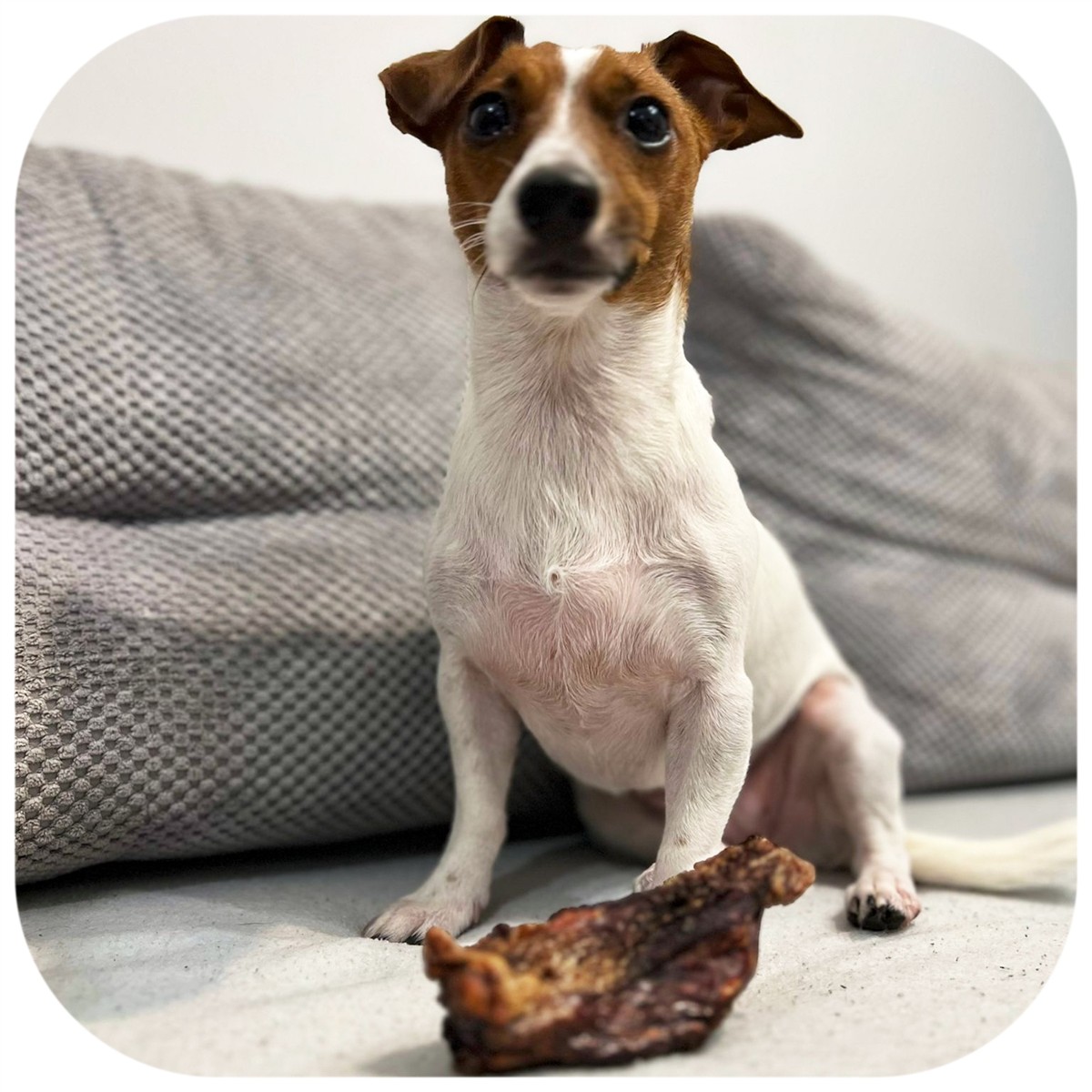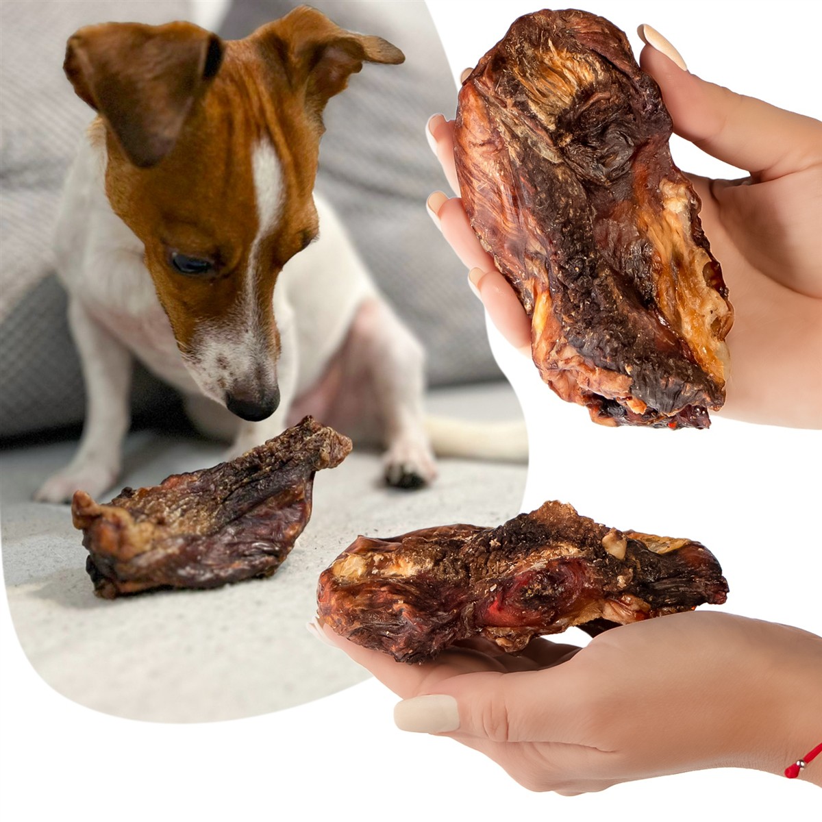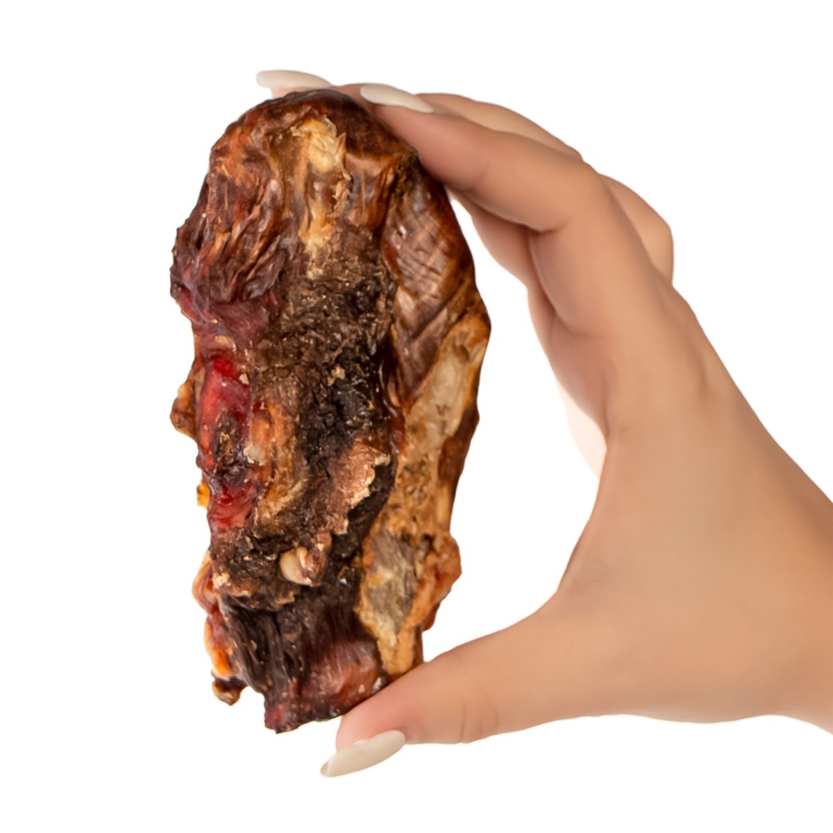 To bardzo twardy kawałek mięsa. Jednakże z czasem długiego gryzienia zaczyna mięknąć przez co można go rozdrobnić na mniejsze możliwe do przełknięcia kawałki. Przypomina to trochę rozbijanie kotletów na obiad - tłuczemy je aby stały się mniej twarde. Mięsień jest bardzo pożywny i super smaczny. Polecany dla średnich psów.