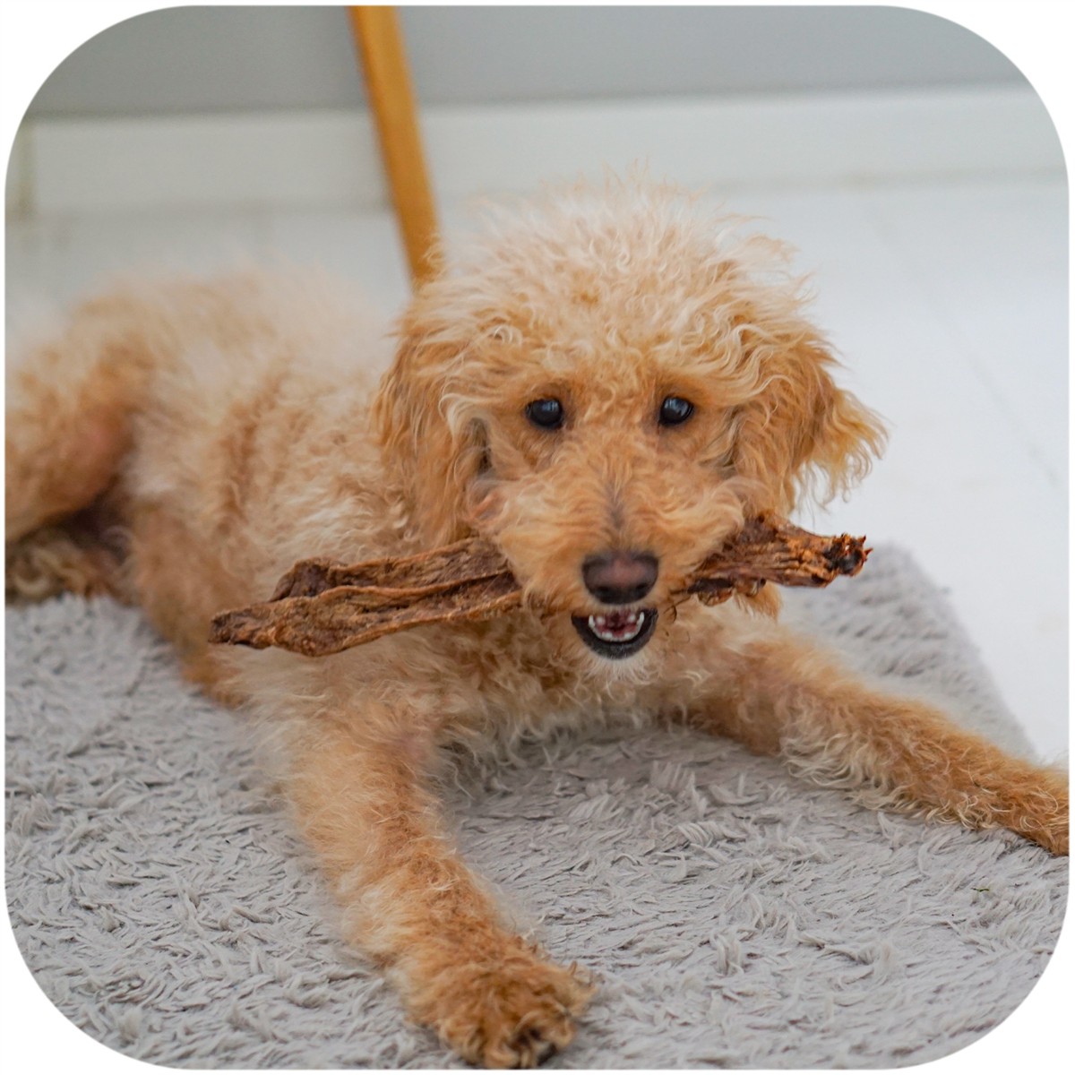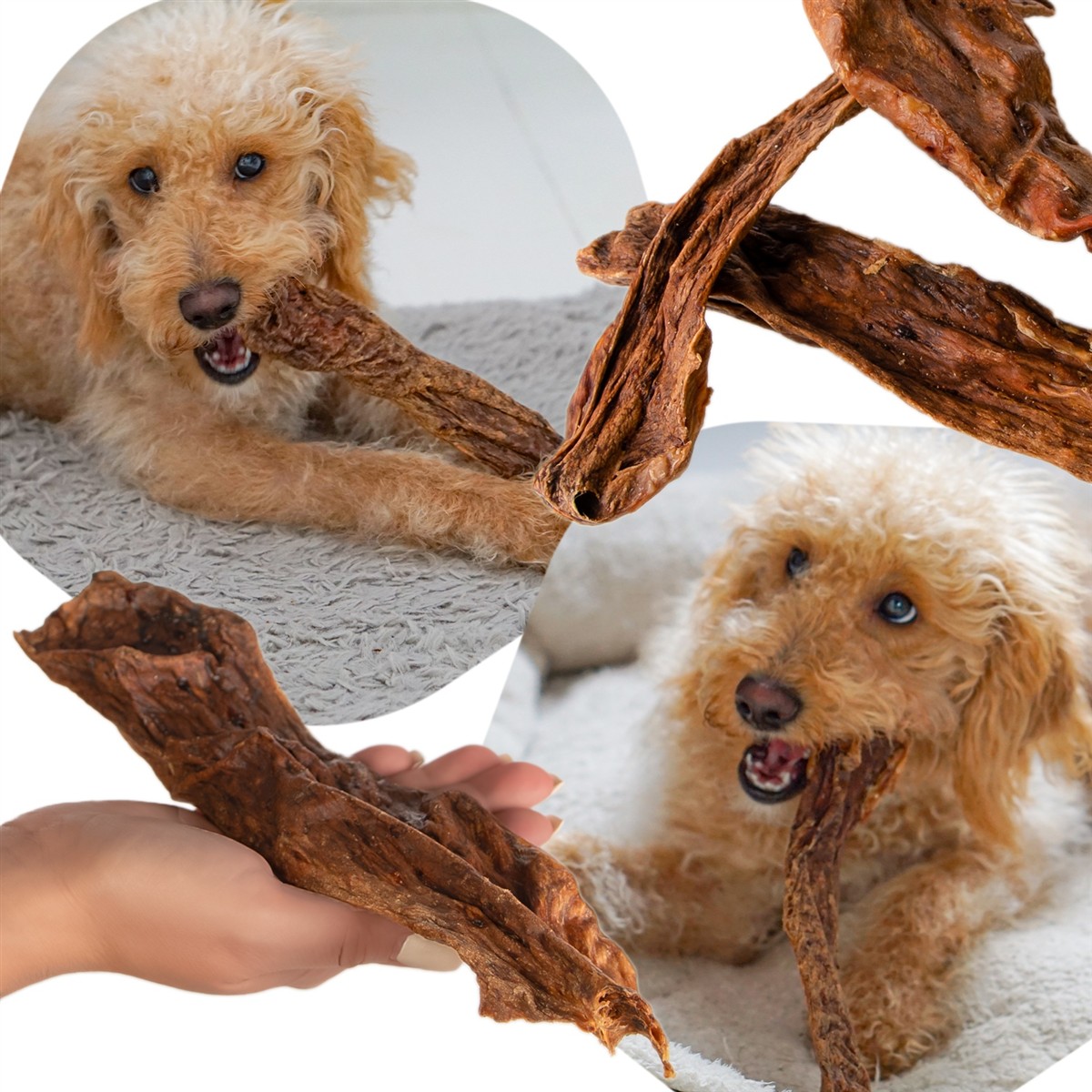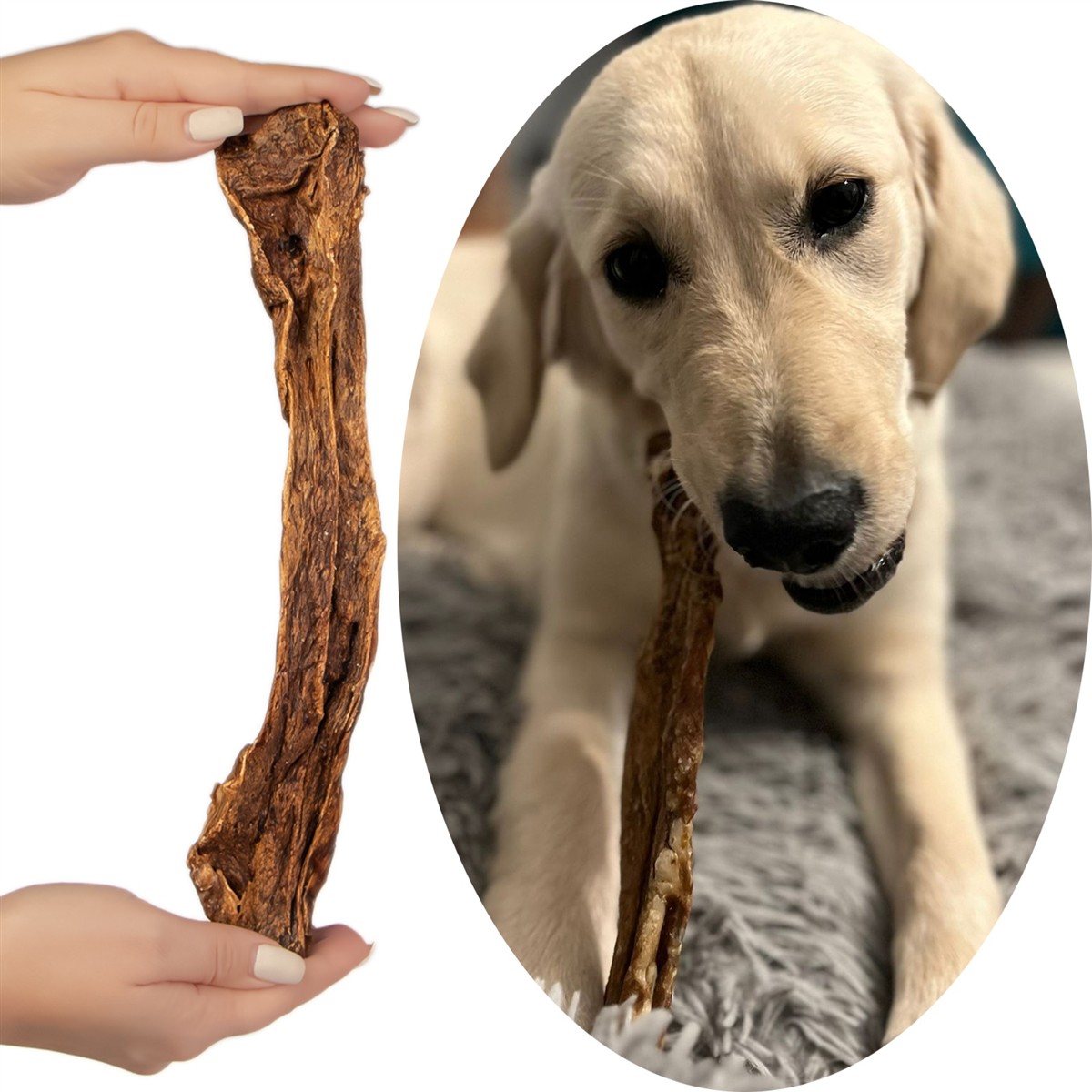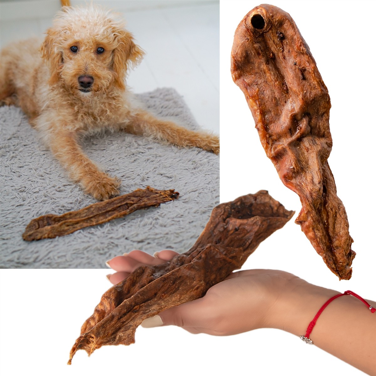 Mięso po suszeniu staje się bardzo twarde. Znamy przecież np: kabanosy. Inaczej jest w przypadku suszenia mięsa pochodzącego z wymion. Mięso to po suszeniu pozostaje miękkie lecz jednocześnie na tyle jest wysuszone, że chwilka minie zanim pies sobie z nim poradzi. Świetnie czyści zęby i dziąsła. Mięso jest pożywne posiada wiele białka i składników odżywczych. Do tego jest smakowite.