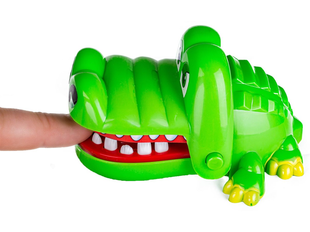 Kajman nie gryzie mocno i nie ma żadnych ostrych krawędzi. Liczy się za to ten dreszczyk emocji – nigdy nie wiadomo, po naciśnięciu którego ząbka paszcza się zamknie.