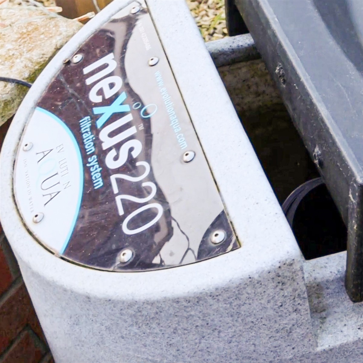 Wydajność filtracji: Nexus 220 jest zaprojektowany, aby obsługiwać stawy o pojemności do 18 000 litrów z rybami lub do 34 000 litrów bez ryb.