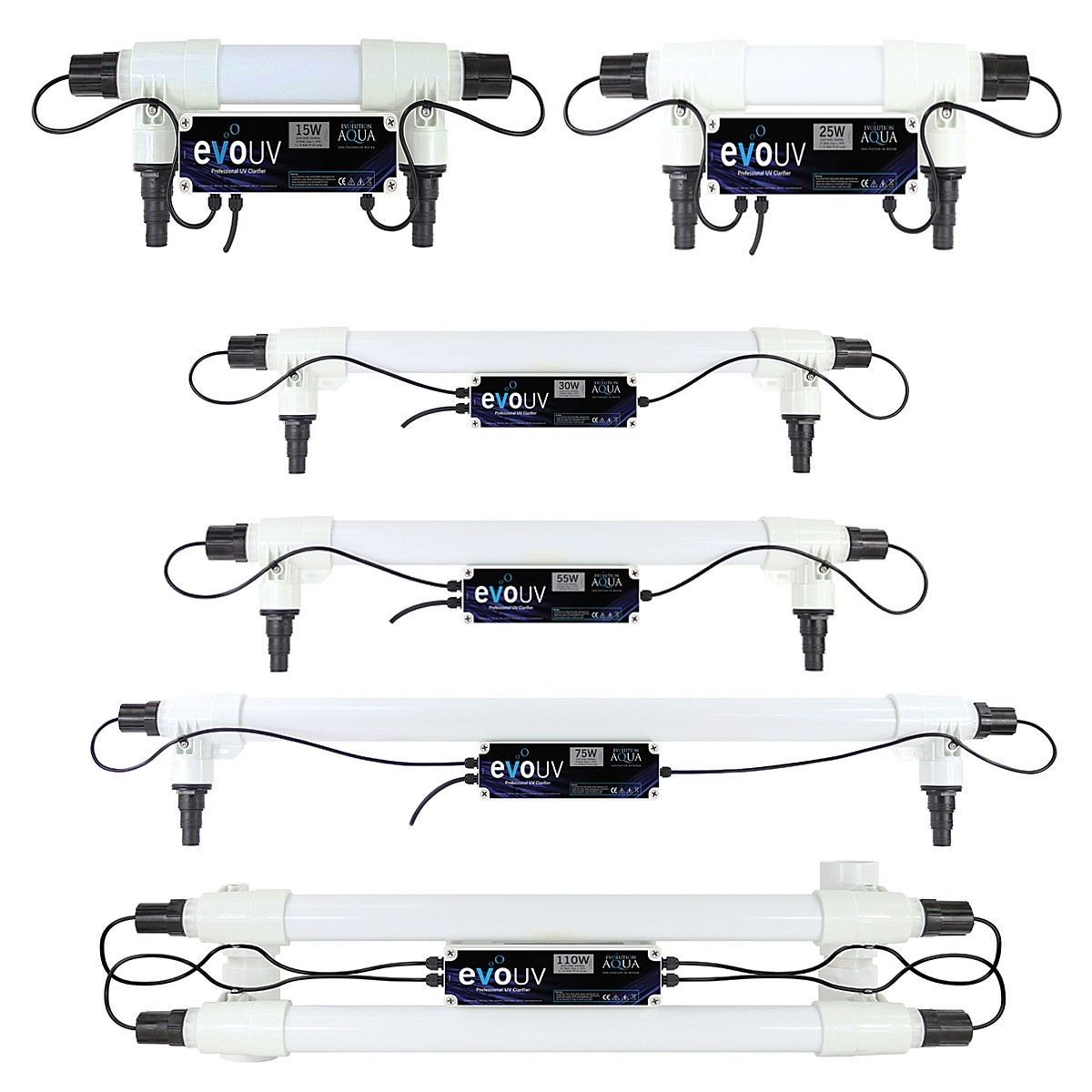 Sterylizatory UV producenta z Wielkiej Brytanii - Evolution Aqua, uchodzą za najlepsze lampy dostępne na rynku. Cechują się solidnością wykonania, przemyślaną zaawansowaną konstrukcją oraz bezkonkurencyjną wydajnością. Do wykonania profesjonalnych lamp użyto materiałów najwyższej klasy, zapewniając całkowitą odporność na działanie wody słodkiej oraz morskiej.