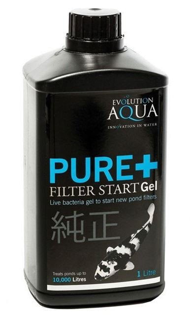 PURE+ Filter Start Gel to żywa, skoncentrowana kultura bakterii do stosowania w nowych oraz na nowo uruchamianych filtrach do stawów i oczek wodnych. Roztwór na bazie żelu doskonale przykleja się do wkładów filtracyjnych i długotrwale uwalnia bakterie i pożywkę dla bakterii, umożliwiając bakteriom nitryfikacyjnym szybsze skolonizowanie filtra jak i całego środowiska wodnego.