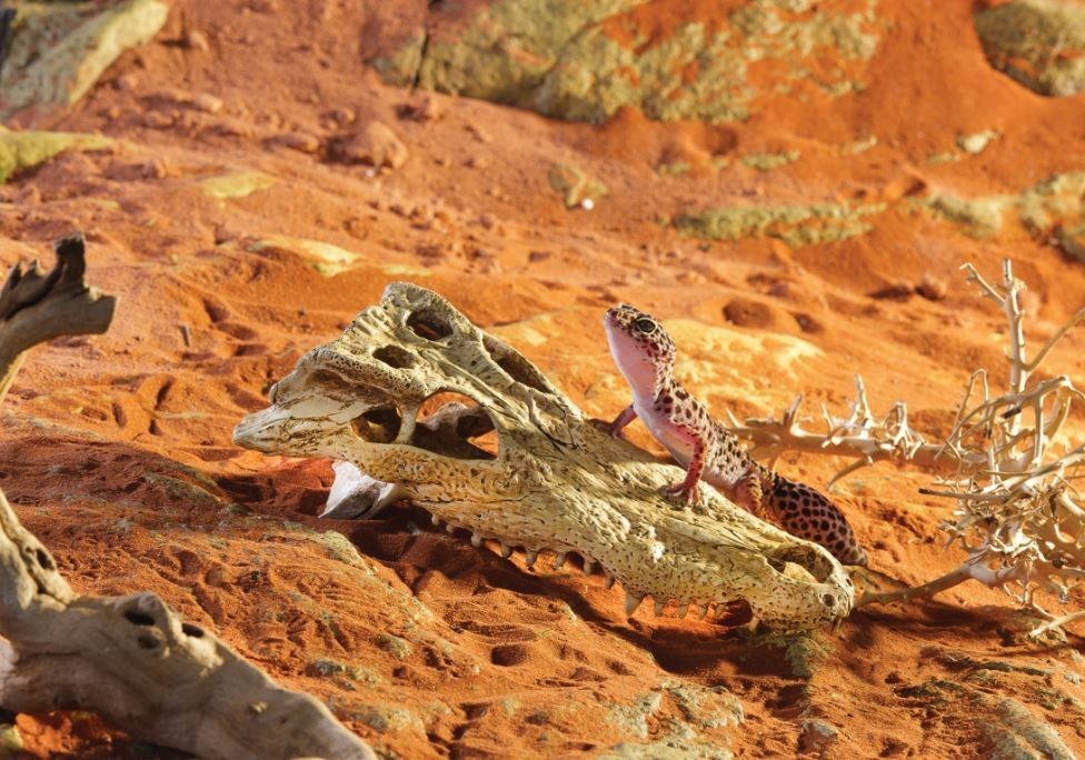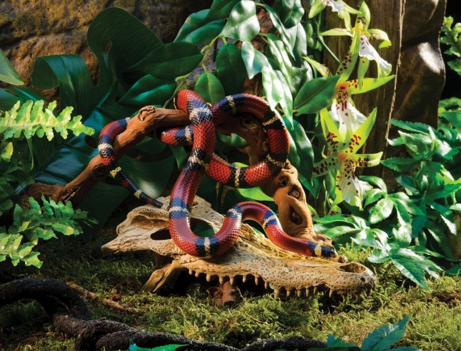 Liczne kryjówki w wybiegu eliminują stres pupila, chronią zwierze przed nadmiernym przegrzaniem oraz stymulują zachowania rozrodcze. Produkt, wykonany z odpornej na uszkodzenia oraz wilgoć żywicy, pokrytej nietoksycznym tworzywem, do złudzenia przypomina prawdziwą czaszkę. Ozdoba jest ciężka, zapewniając stabilność kryjówki, nawet pod naporem energicznych i ciężkich pupili. Wysokiej jakości laminat upraszcza czyszczenie oraz dezynfekcje.