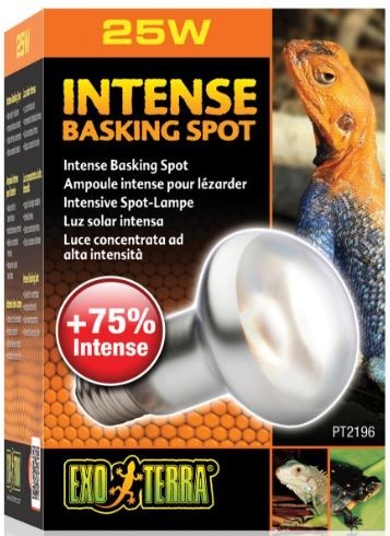 Żarówka grzewcza Intense Basking Spot producenta EXO TERRA doskonale sprawdza się jako światło dzienne pozytywnie wpływając na samopoczucie zwierząt.