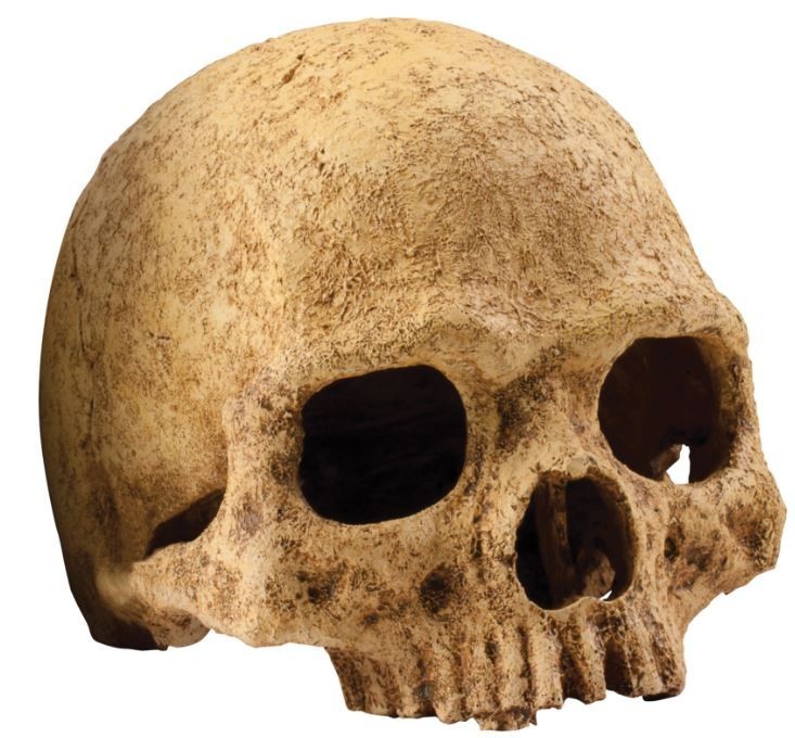 Liczne kryjówki w wybiegu eliminują stres pupila, chronią zwierze przed nadmiernym przegrzaniem oraz stymulują zachowania rozrodcze. Produkt, wykonany z odpornej na uszkodzenia oraz wilgoć żywicy, pokrytej nietoksycznym tworzywem, do złudzenia przypomina prawdziwą czaszkę. Ozdoba jest ciężka, zapewniając stabilność kryjówki, nawet pod naporem energicznych i ciężkich pupili. Wysokiej jakości laminat upraszcza czyszczenie oraz dezynfekcje.