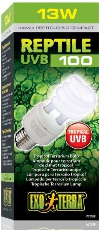 Żarówka kompaktowa emitująca promieniowanie UVB i UVA jest przeznaczona użytku w terrariach o charakterze tropikalnym. EXO TERRA reptile UVB 100 emituje opytmalne spektrum barw oraz specjalnie dobrane proporcje promieniowania UVA i UVB idealnie odwzorowując natruralne światło lasów i rejonów tropikalnychi oraz rejonów subtropikalnych.
