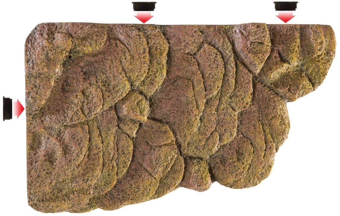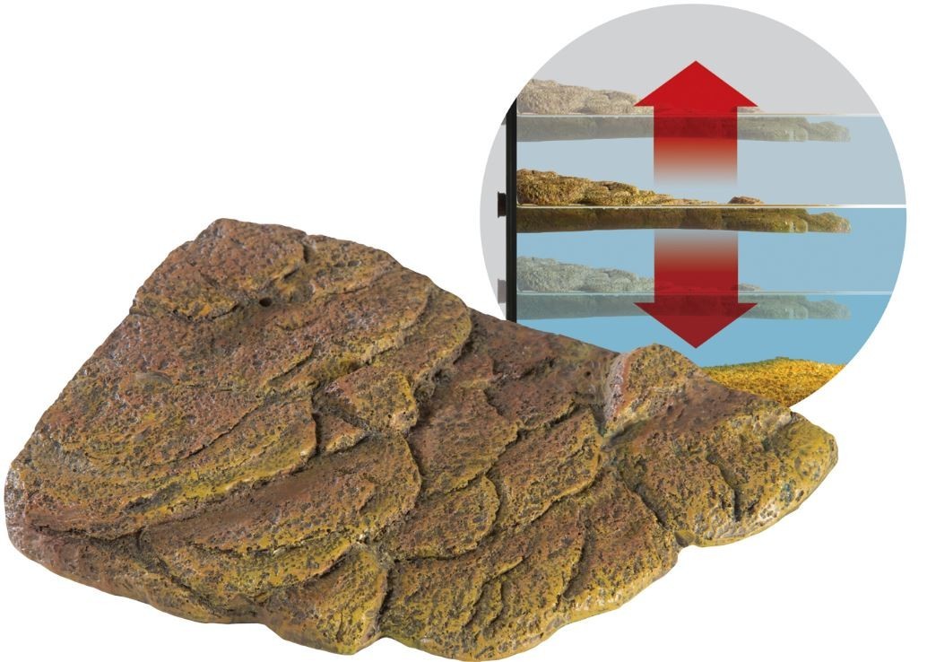 Wyspa utrzymywana jest na wodzie za pomocą magnesów oraz pustej przestrzeni wewnątrz wyspy o dużej wyporności, dzięki czemu może utrzymać nawet kilka żółwi lub płazów. Bez wysiłku produkt można dopasować do każdego poziomu wody. Naturalny wygląd kamienno-błotnistej wyspy łatwo wpasuje się w estetykę każdego zbiornika. Należy pamiętać, że bez bezpiecznego miejsca do spania i ukrywania oraz dostępu do ciepła, gady oraz płazy szybko popadają w stres, co wpływa na ich zdrowie, aktywność i apetyt.