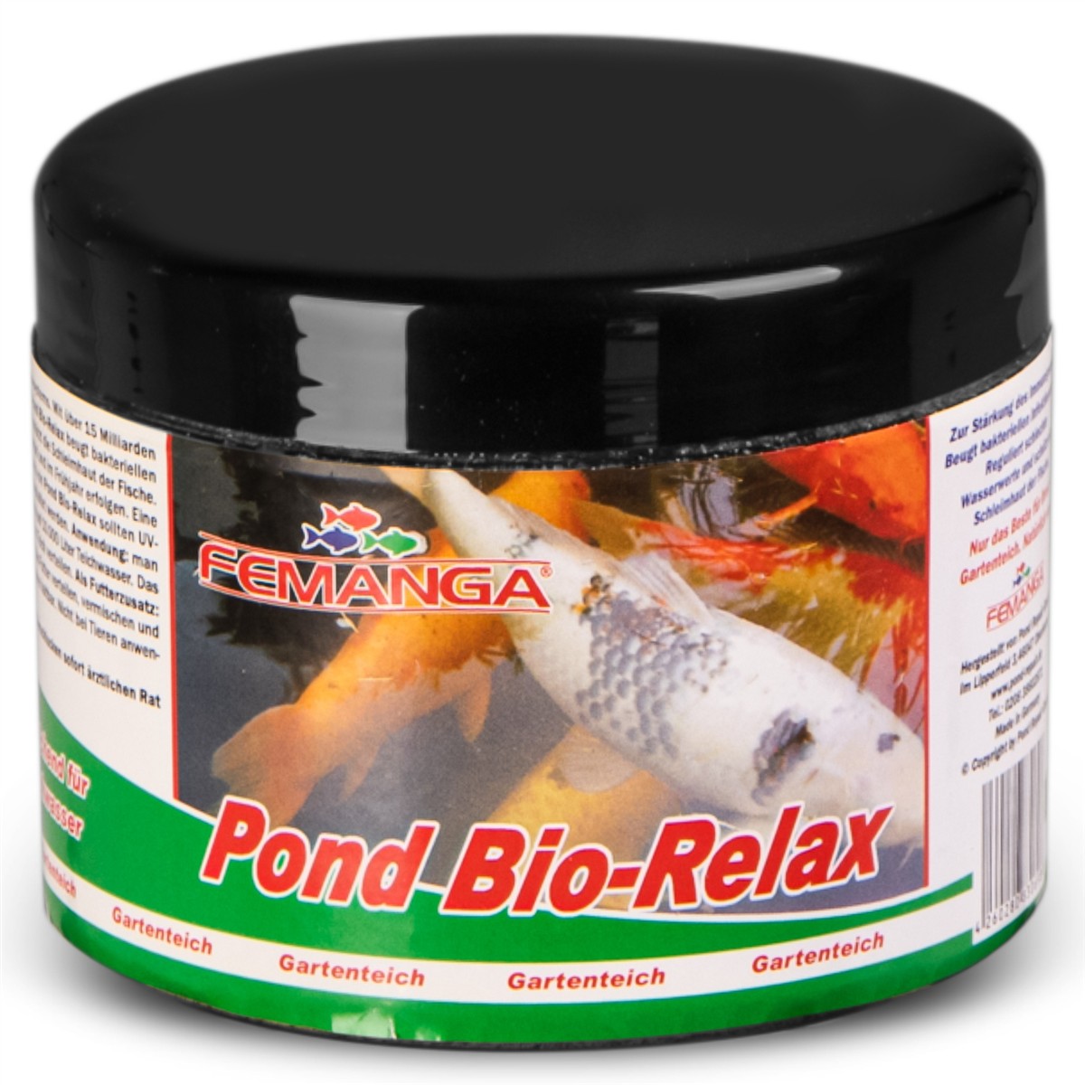 Pond Bio – Relax to preparat wspomagający system odpornościowy ryb stawowych. Zawiera ponad 15 miliardów bakterii kwasu mlekowego i 10 miliardów komórek drożdży. Produkt ten zapobiega infekcjom bakteryjnym, reguluje niekorzystne parametry wody i chroni błonę śluzową ryb. Zaleca się stosowanie po użyciu leków, jesienią i wiosną, a także miesięczne dodawanie dla utrzymania zdrowia stawu. Przed użyciem Pond Bio – Relax należy wyłączyć lampy UV i ozon na co najmniej 30 godzin.